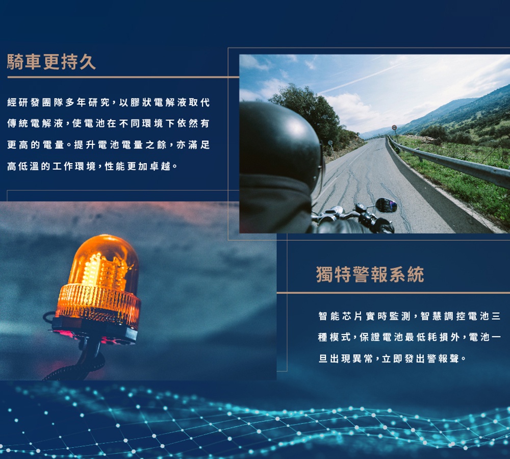 ■全球獨創智能警示系統,電壓異常、容量不足時自動發出鳴示音,不必擔心無預警的熄火,耽誤行程