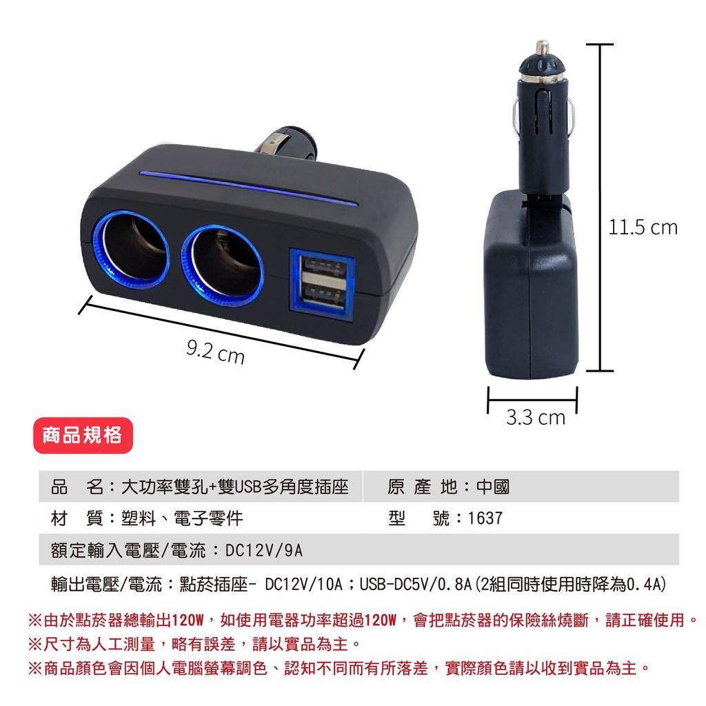 由於點菸器總輸出120W,如使用電器功率超過120W,會把點菸器的保險絲燒斷,請正確使用。