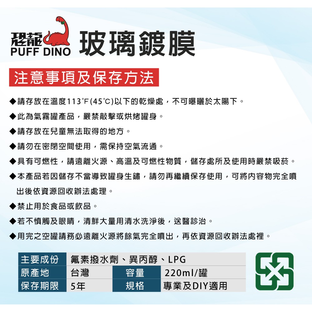 恐龍玻璃鍍膜採用高透亮的高級氟素原料,性能優於傳統的矽樹脂產品,雨刷擺動期間不會跳動,不會造成視線模糊不清。