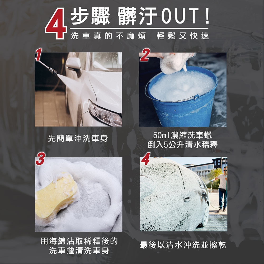 2. 洗車蠟用清水稀釋(1:100比例)