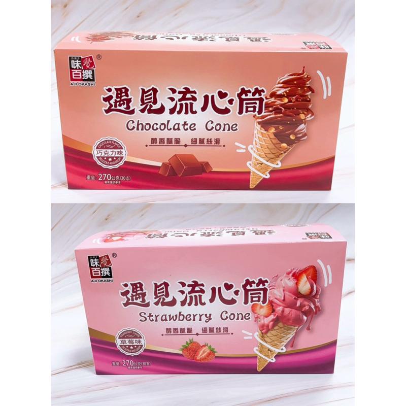 遇見流心筒 巧克力味 草莓味 9g*30支 270g 甜筒造型點心 巧克力 甜筒 草莓 冰淇淋 獨立包裝 小朋友 裡面獨立包裝 有30支 cp值超高 脆脆餅乾+餡料 好好吃 日期都是新的