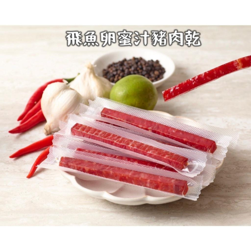 飛魚卵肉乾 筷子肉乾 真正飛魚卵 厚切蜜汁豬肉乾 200克 珍材實料 真空包裝 台灣豬