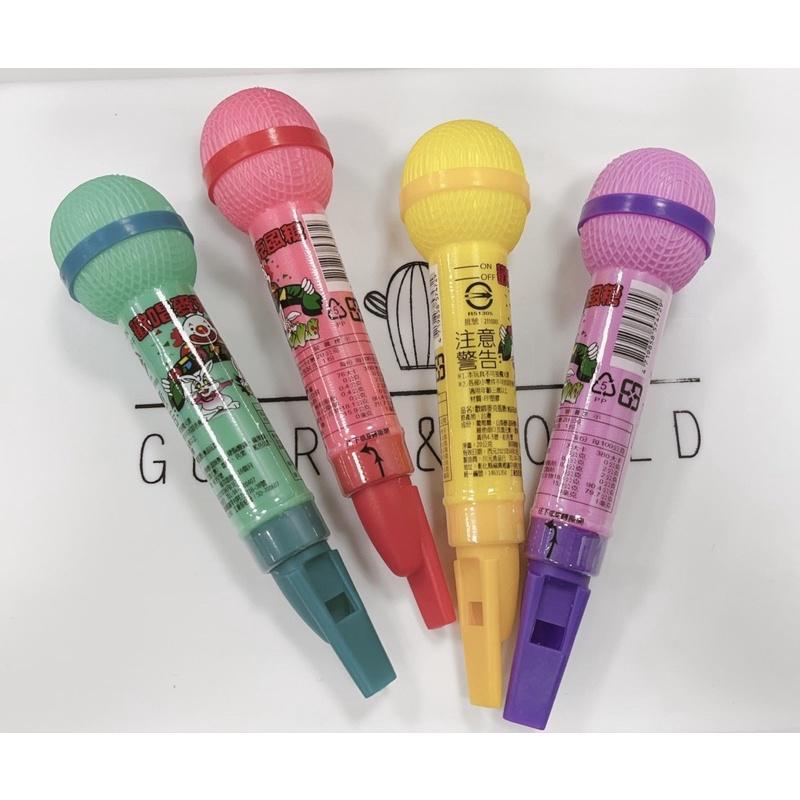 麥克風造型 底部是笛子可以吹 中間有糖果