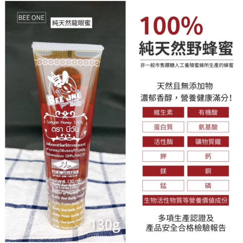 泰國 BEE ONE SGS 認證 100% 純天然龍眼蜜 隨手條 泰國原裝 130g 蜂蜜 純蜂蜜 方便 隨身 龍眼蜜
