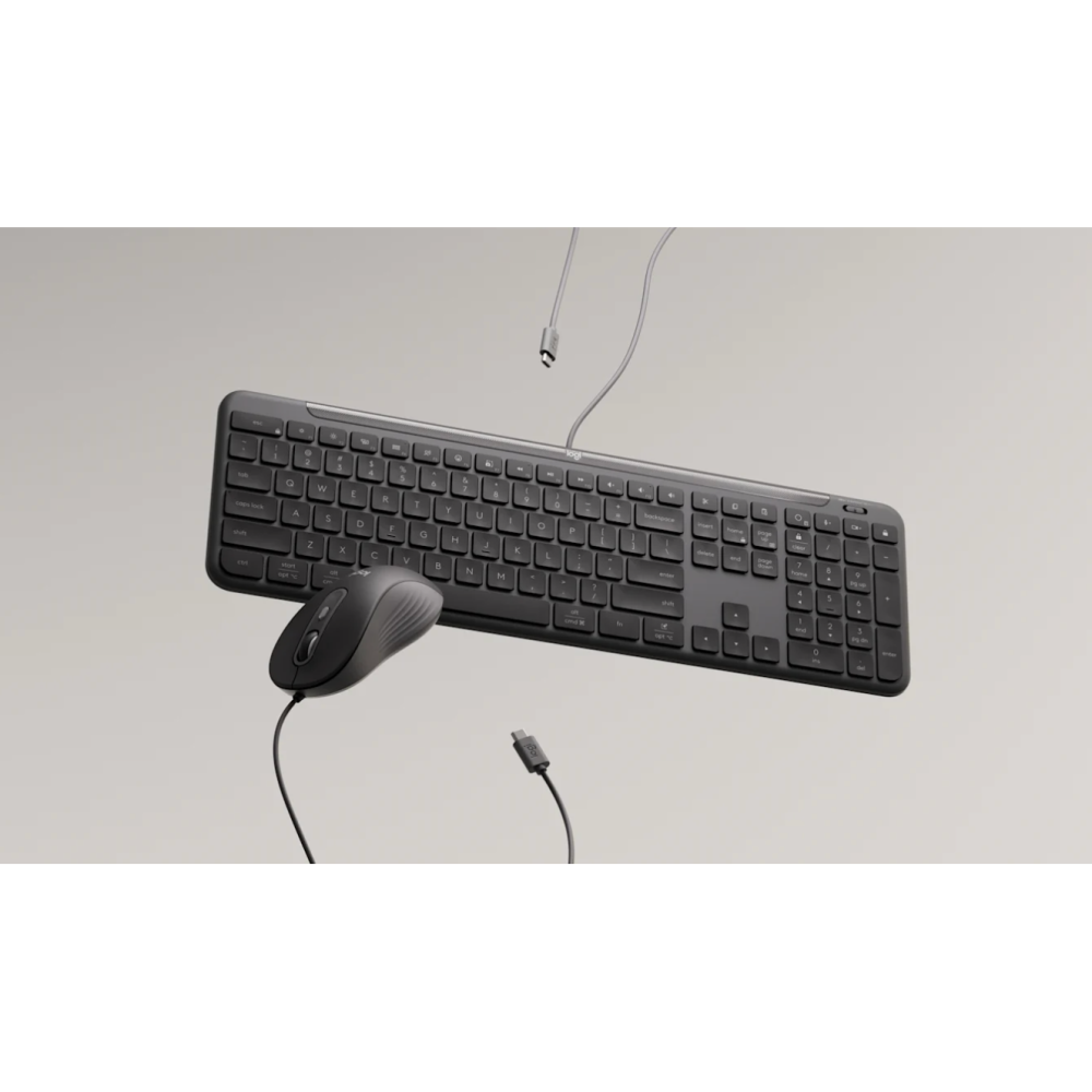相容於多種作業系統的 USB-C 鍵盤與滑鼠組合,具有筆記型電腦風格打字體驗和左右手通用滑鼠,適用於需要有線連線的工作場所。