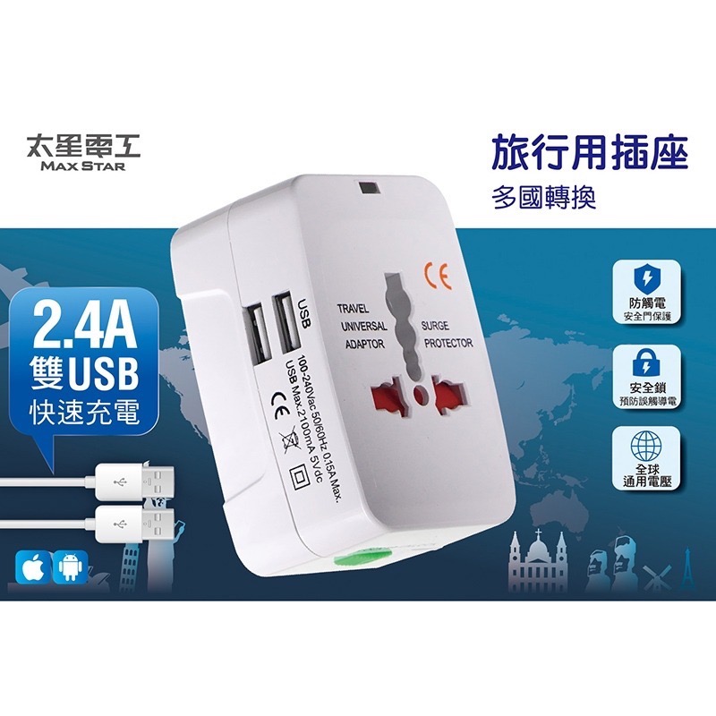 1. 多種國際標準插頭,滿足您出國旅遊需求。