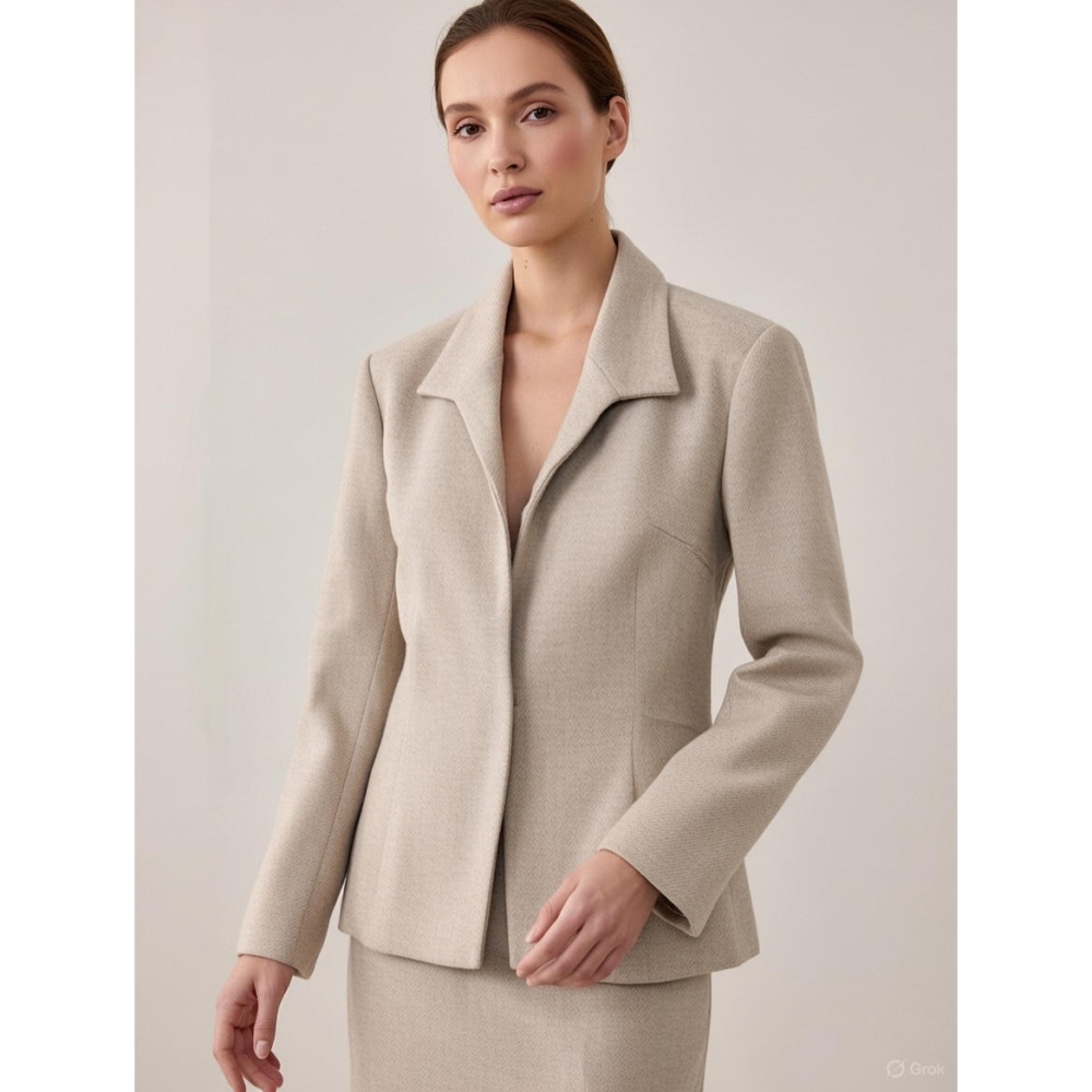 原創草堂100%淺灰色羊毛西裝外套 無領設計俐落有型,隱藏式暗釦簡單大方 修身剪裁不顯胖 100%羊毛外套保暖好看 肩寬 37cm 袖長 52.5cm 100%羊毛,原料產地為日本,台灣製造 8成新 有部分污漬,請看圖片