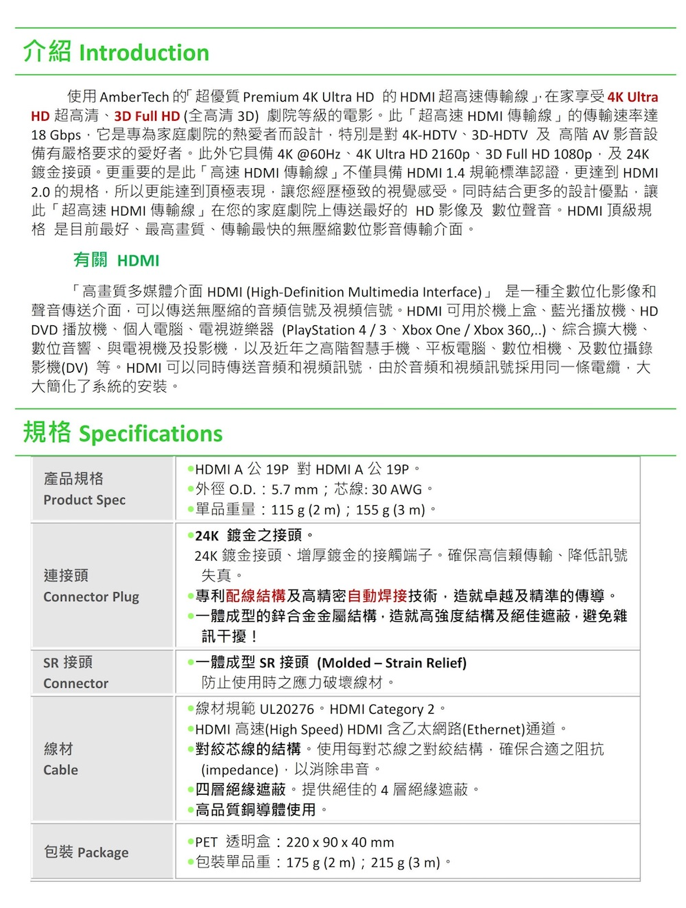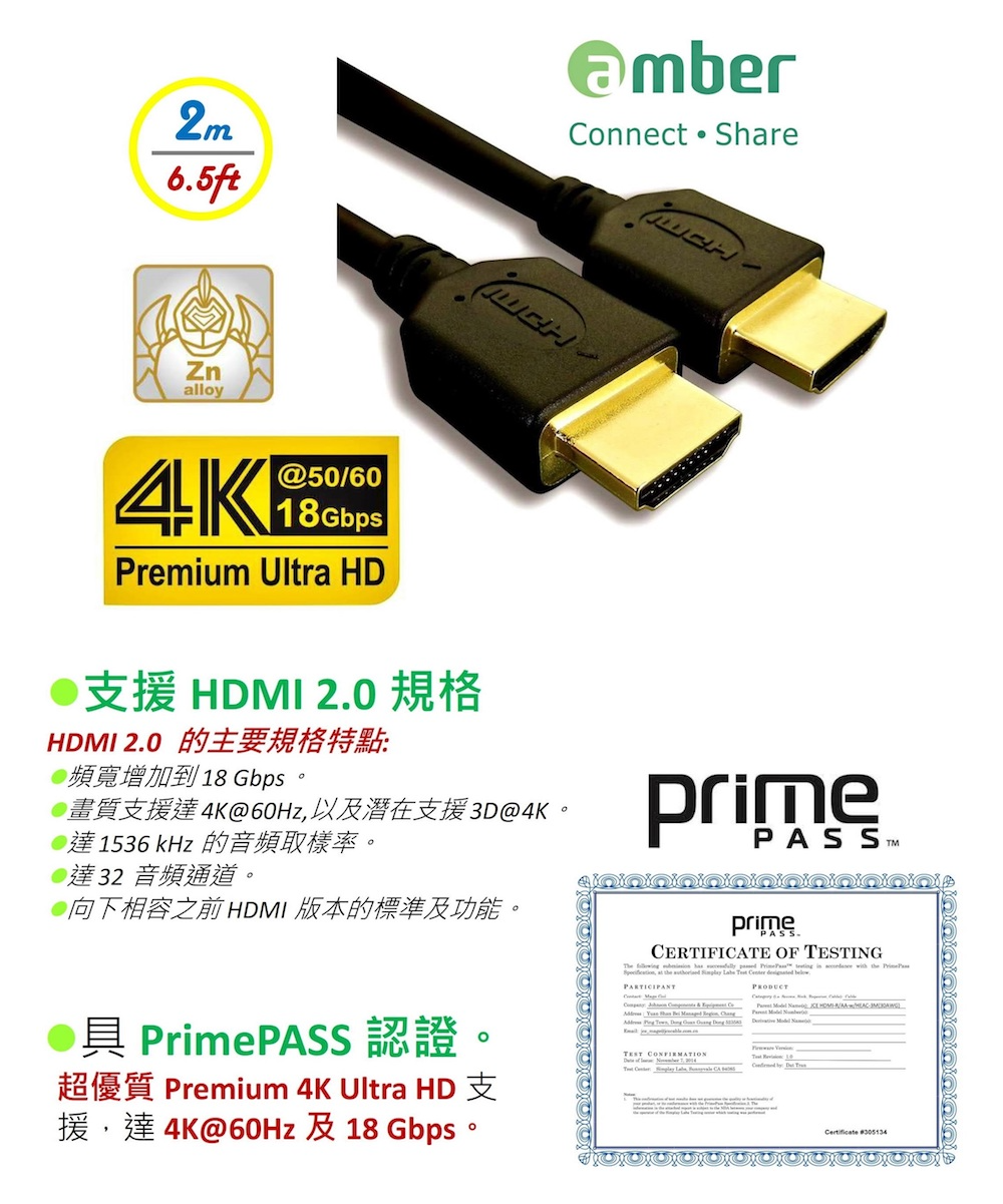 amber 4K2K 具HDMI 1.4認證 支援HDMI 2.0版 高階影音線材