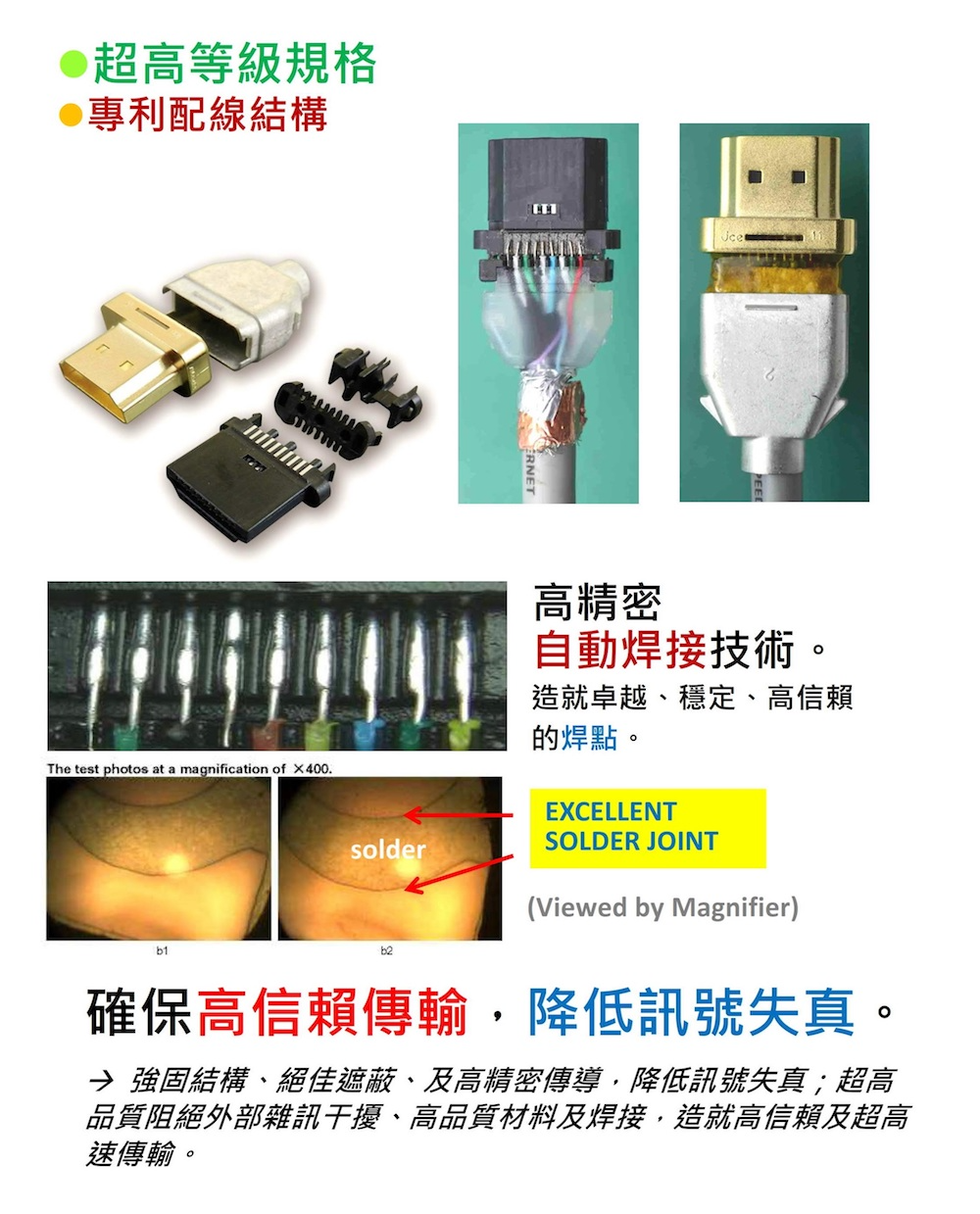 • 專利配線結構及高精密自動焊接技術,造就卓越及精準的傳導。