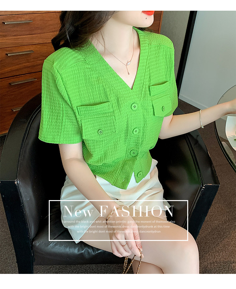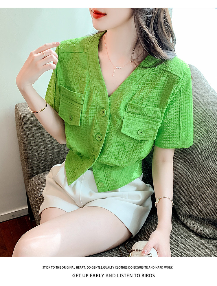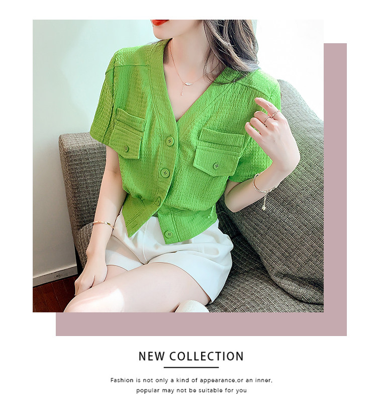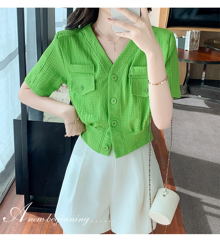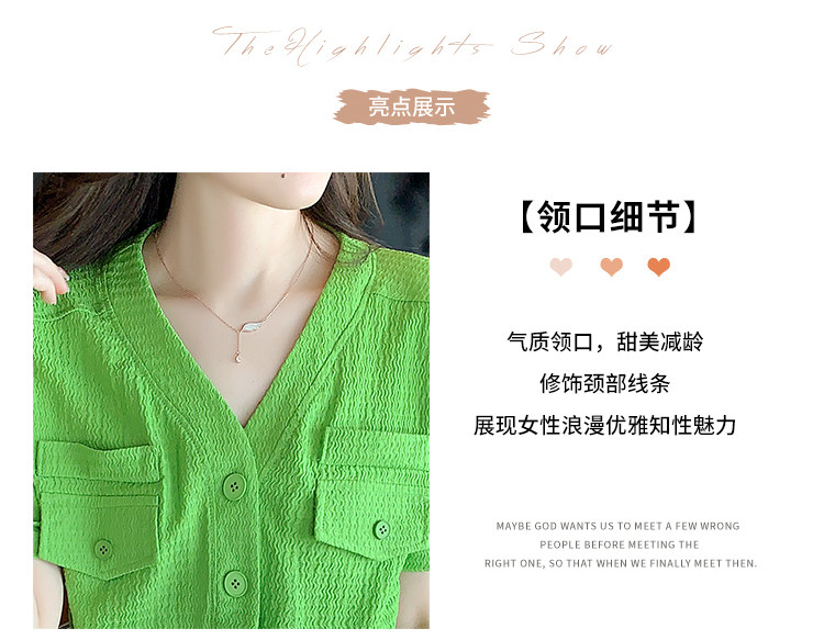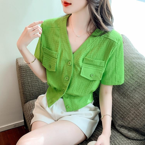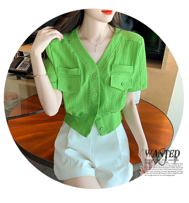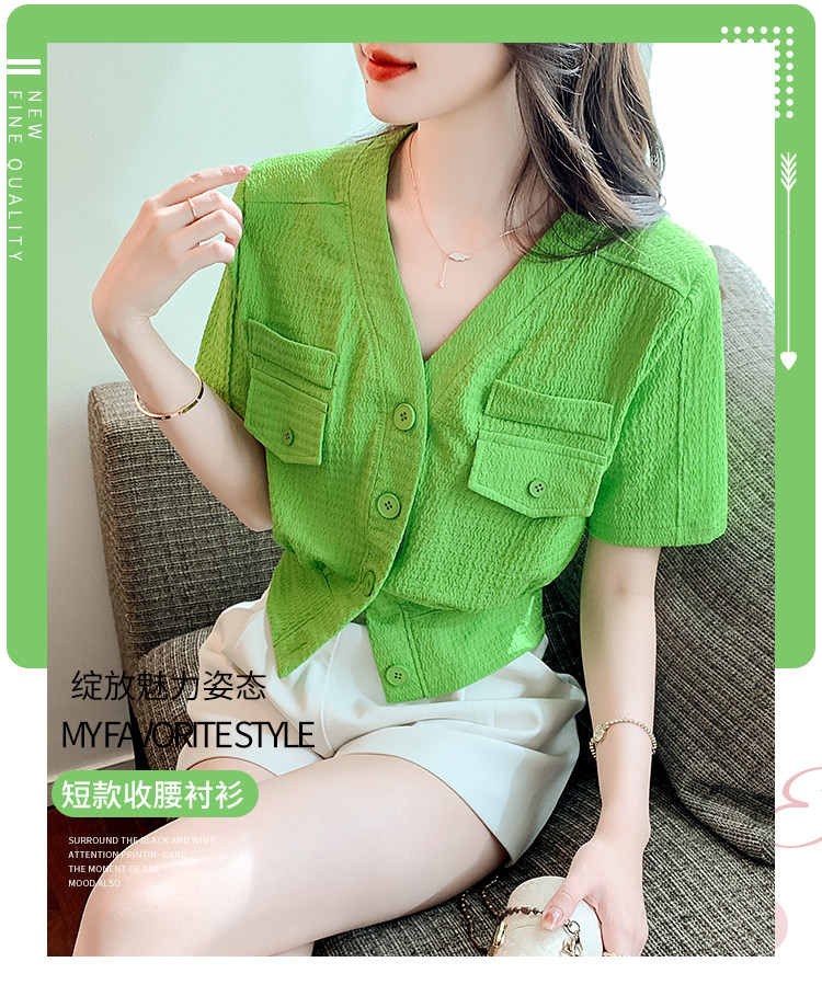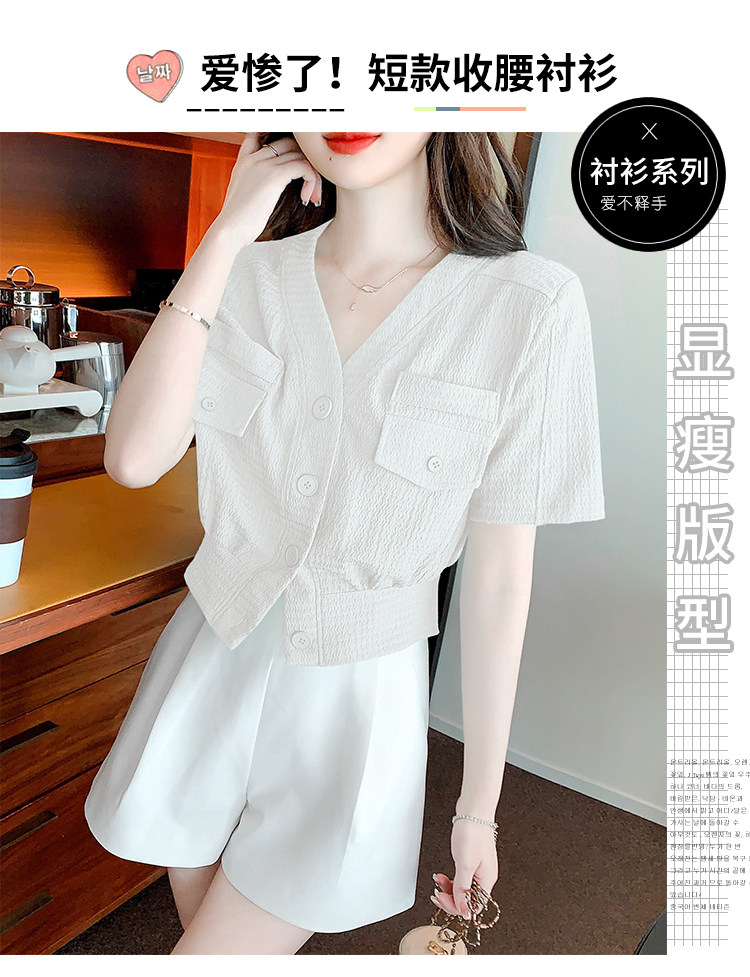DearGod正韓女裝2022夏季新款短款短袖法式襯衫寬松上衣v領針織衫設計感小眾女裝