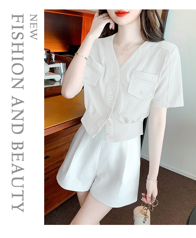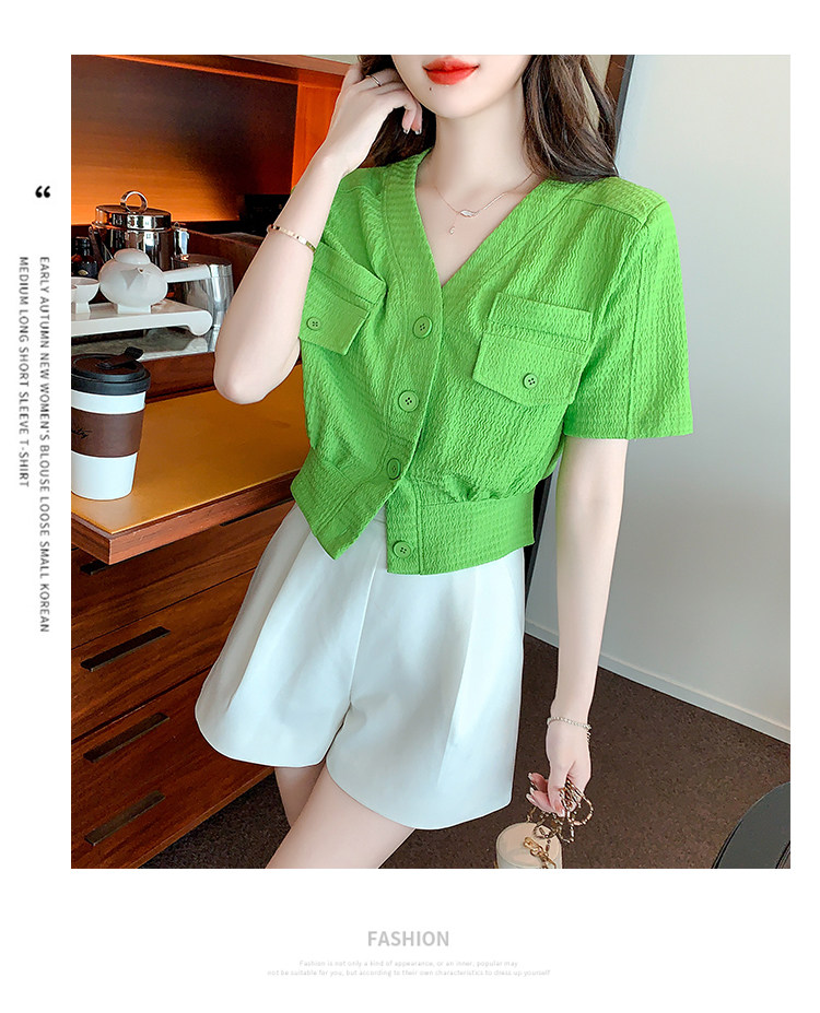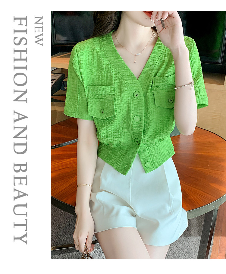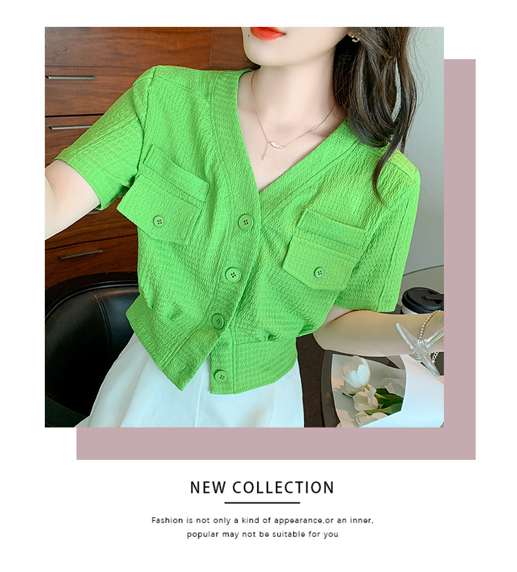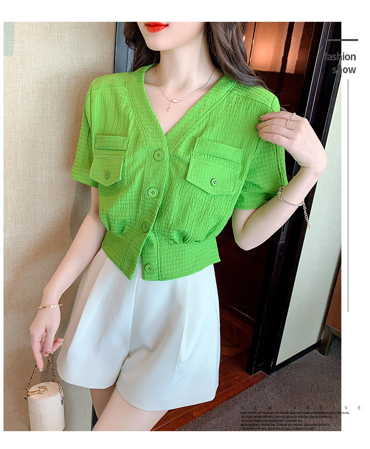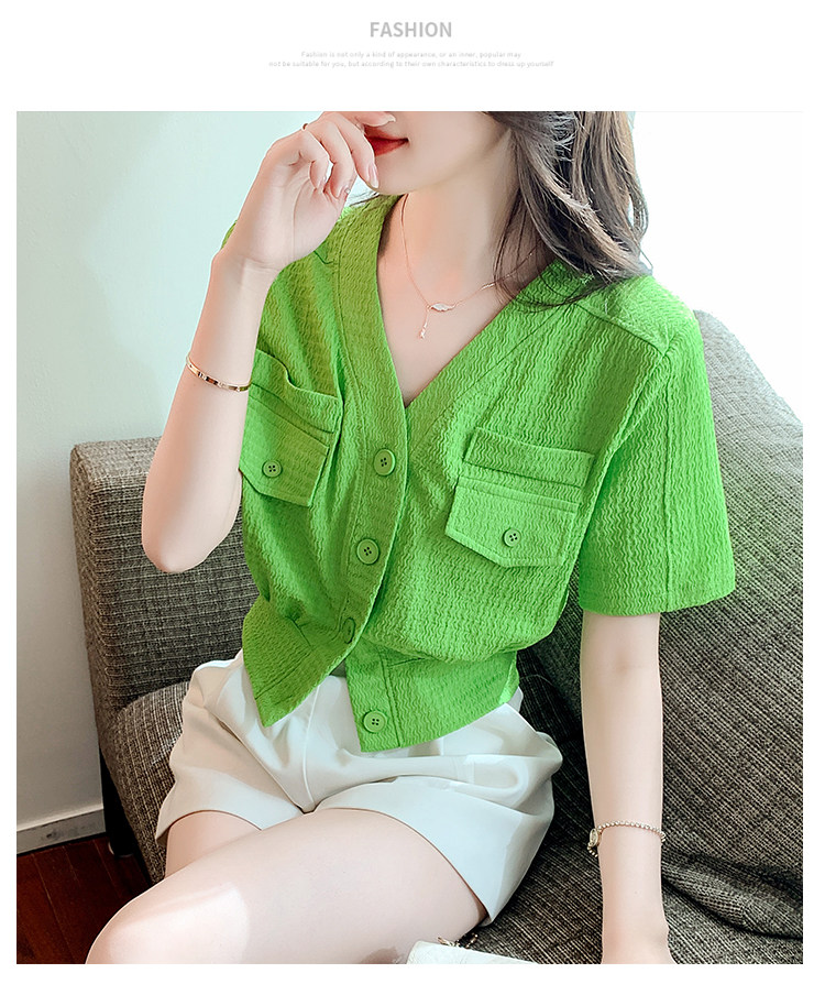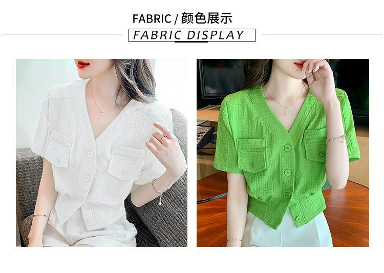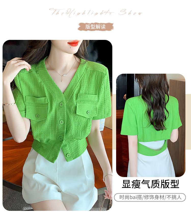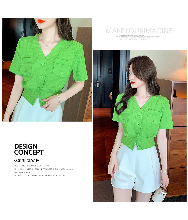 DearGod正韓女裝2022夏季新款短款短袖法式襯衫寬松上衣v領針織衫設計感小眾女裝