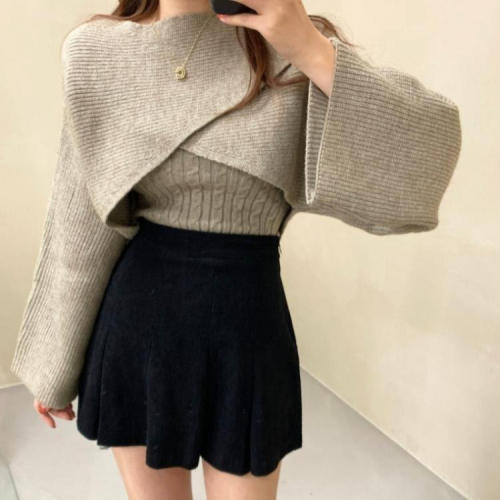 DearGod正韓女裝韓國chic秋冬復古學院風針織吊帶背心 寬松披肩罩衫兩件套毛衣女