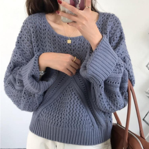 DearGod正韓女裝韓國chic秋冬復古圓領設計感小眾套頭百搭加厚鏤空長袖針織毛衣女