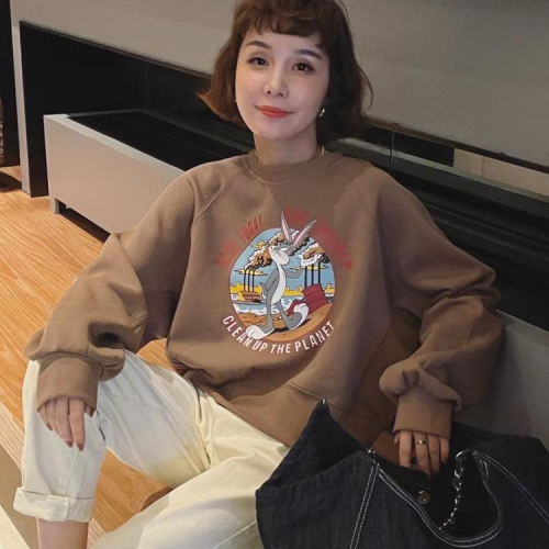 DearGod正韓女裝歐洲站2022秋季新款圓領韓味卡通兔子印花寬松小個子長袖短款衛衣