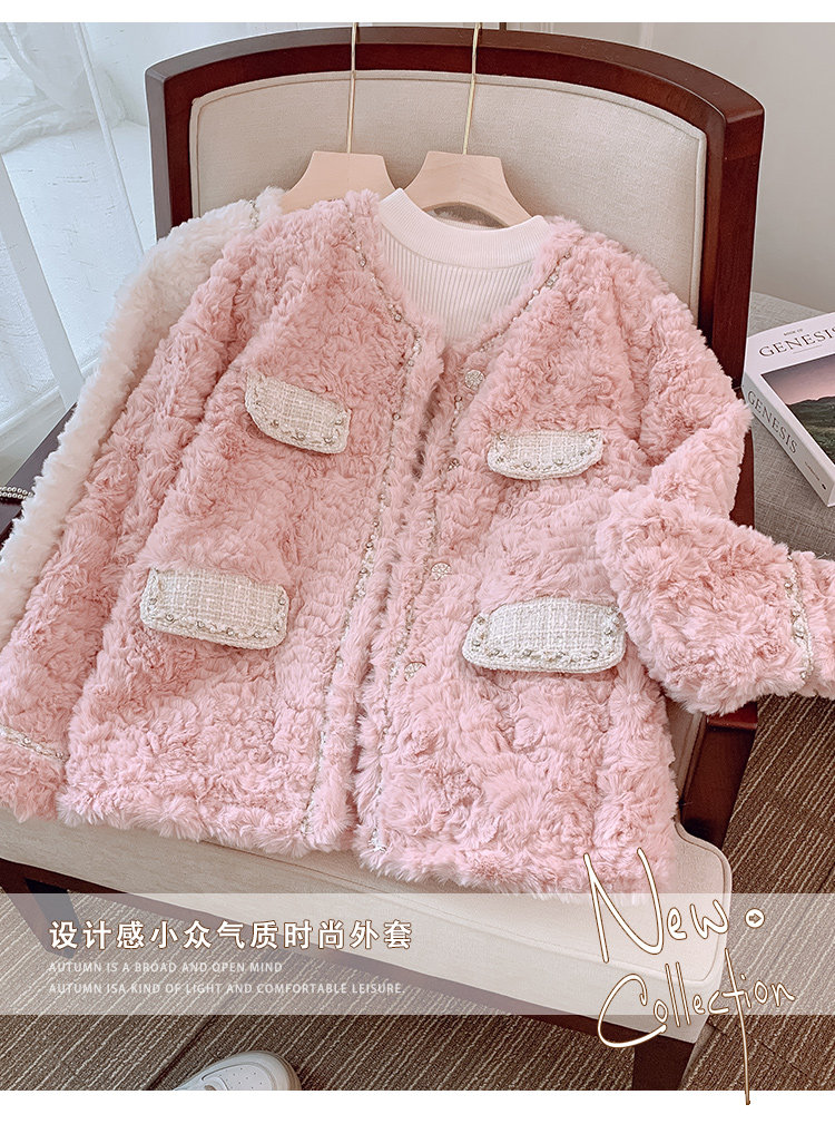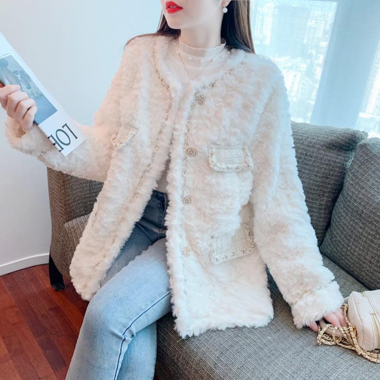 DearGod正韓女裝2022年新款秋冬季小眾設計感皮毛一體小香風外套呢子大衣上衣女士