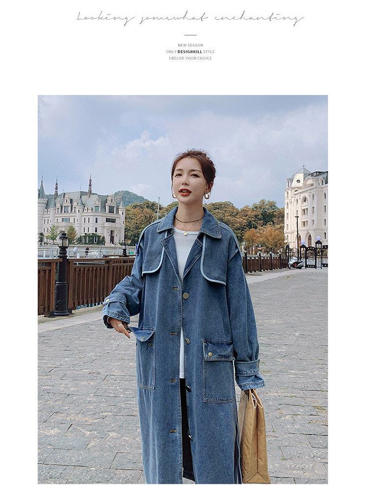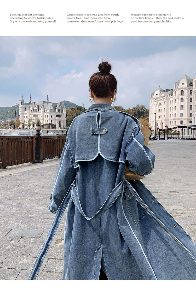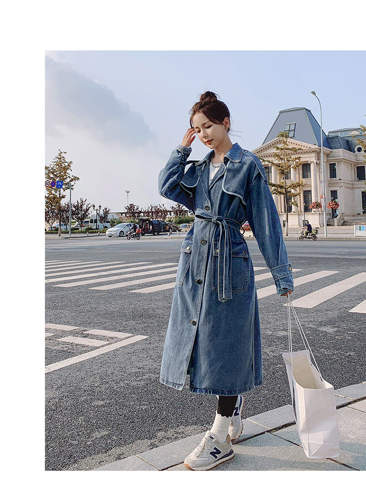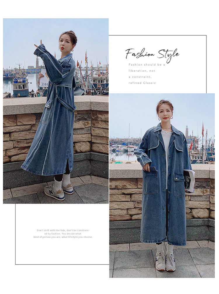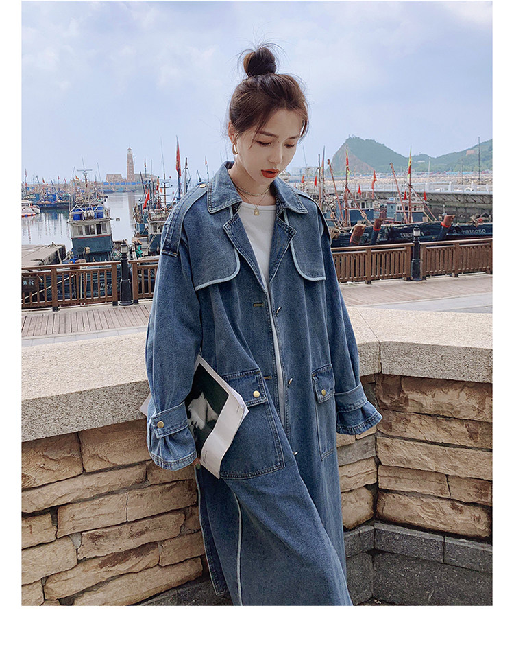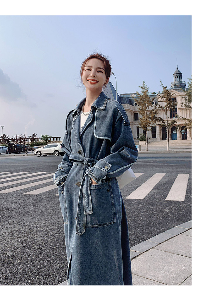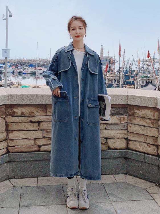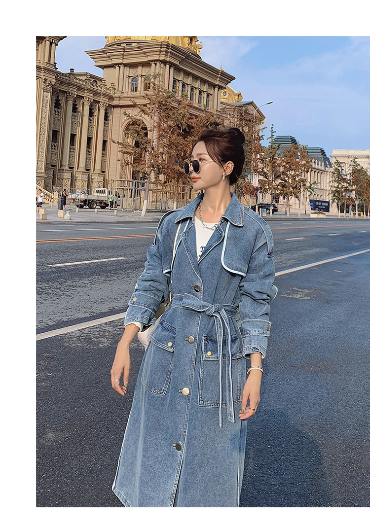 DearGod正韓女裝高端歐貨正韓寬松過膝中長款牛仔風衣女2022春秋新款休閒大衣外套