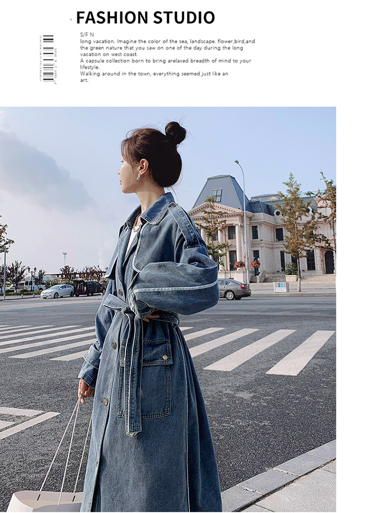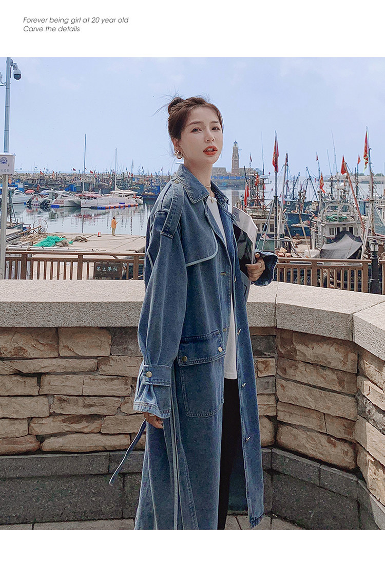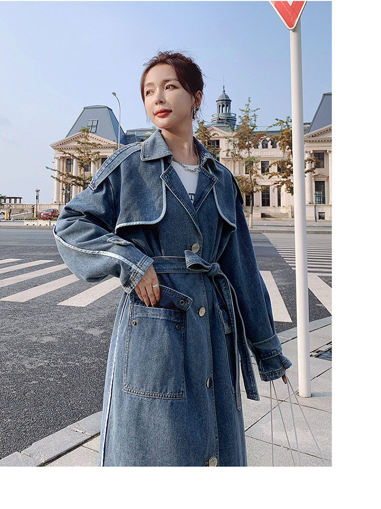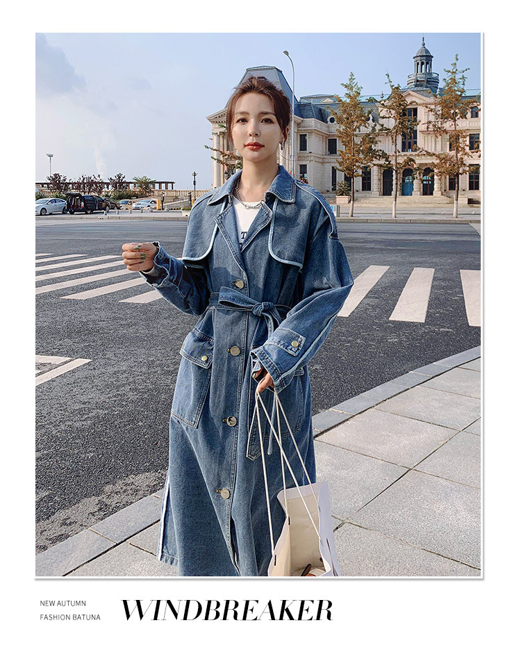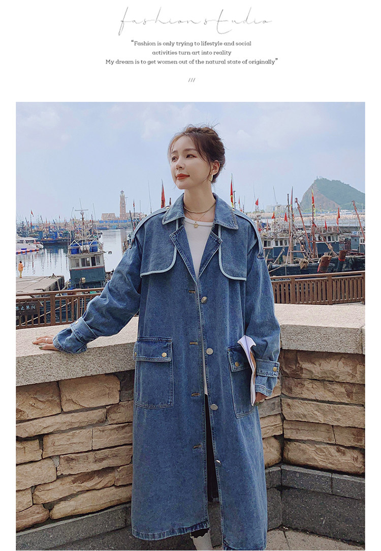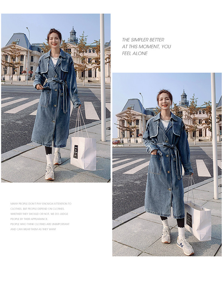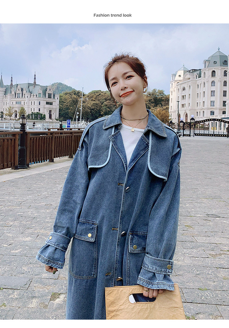 DearGod正韓女裝高端歐貨正韓寬松過膝中長款牛仔風衣女2022春秋新款休閒大衣外套