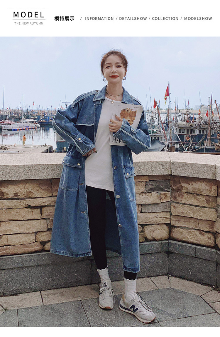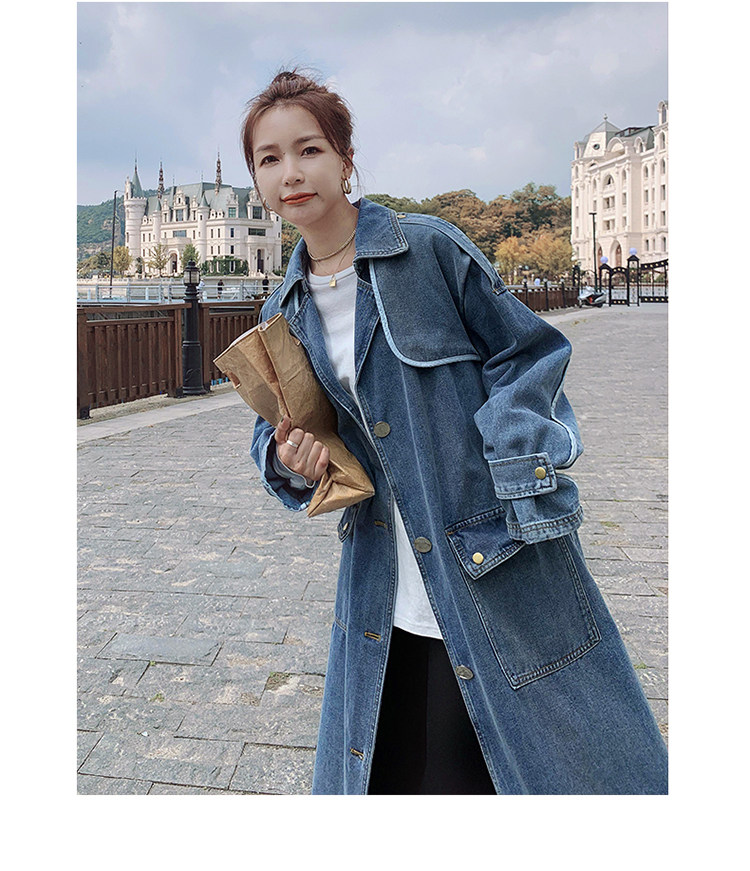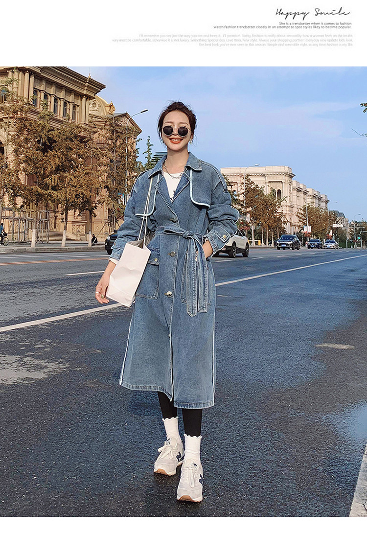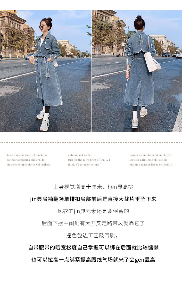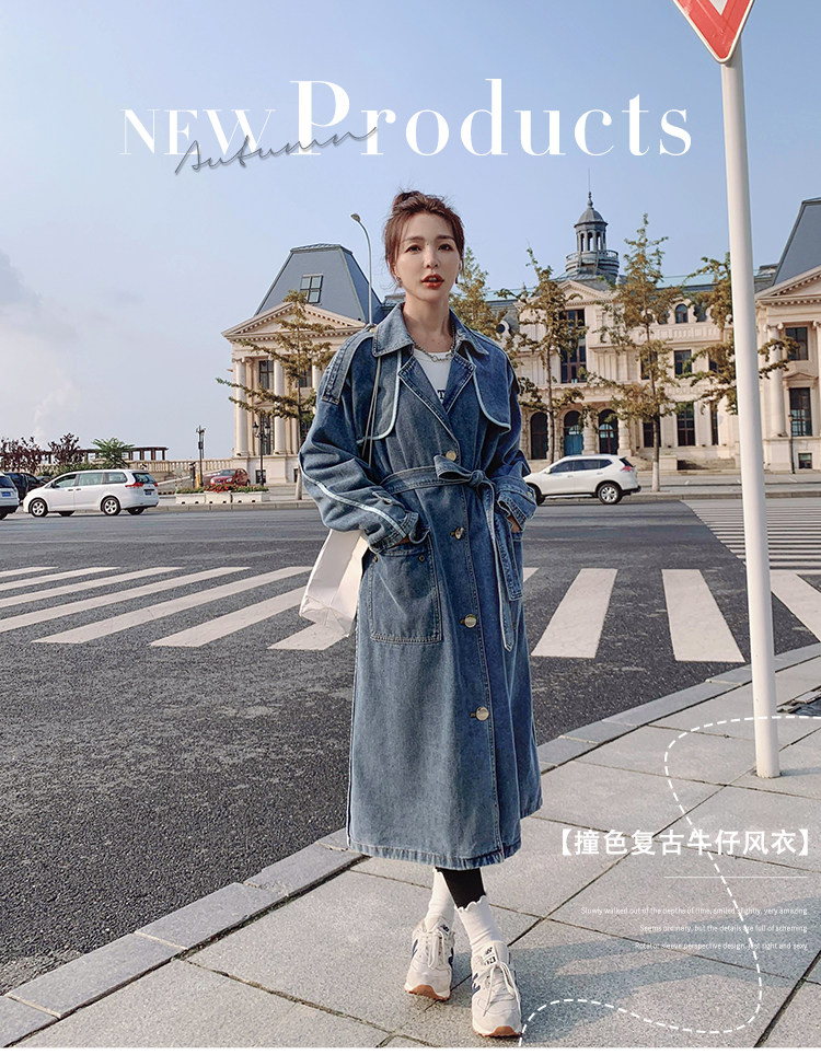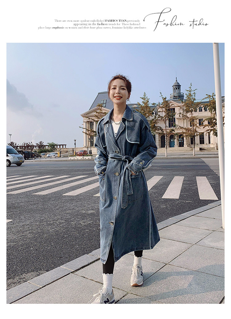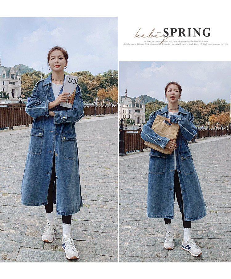 DearGod正韓女裝高端歐貨正韓寬松過膝中長款牛仔風衣女2022春秋新款休閒大衣外套
