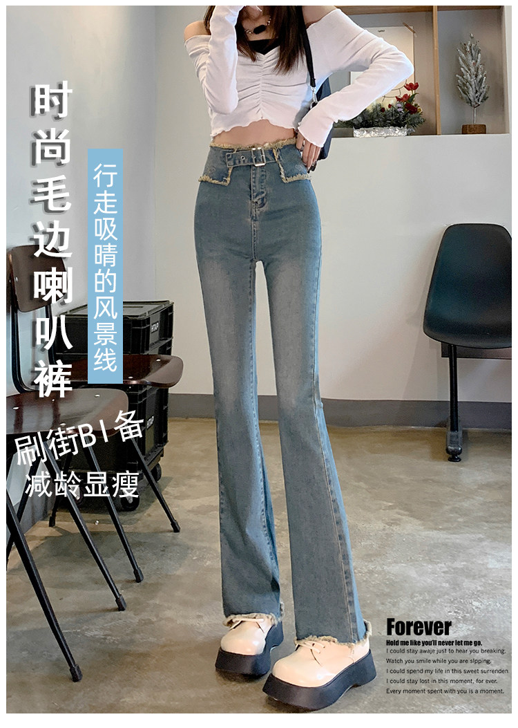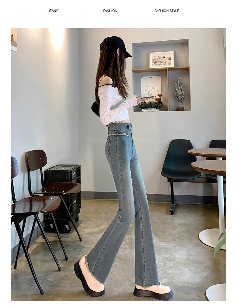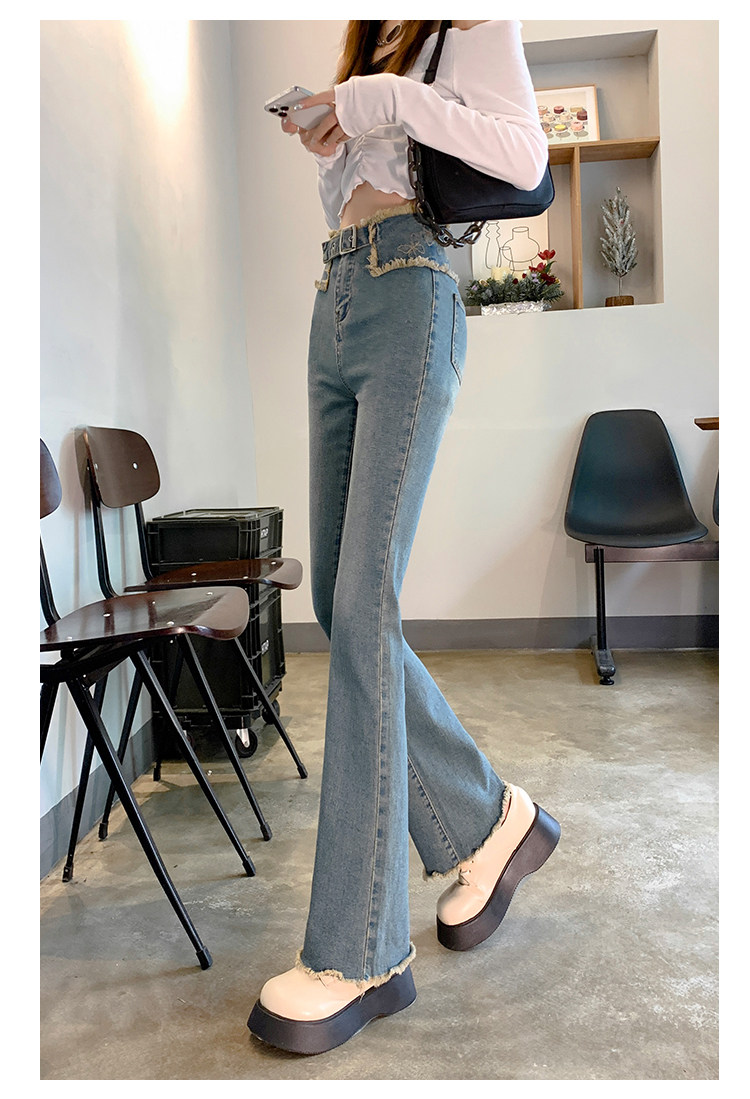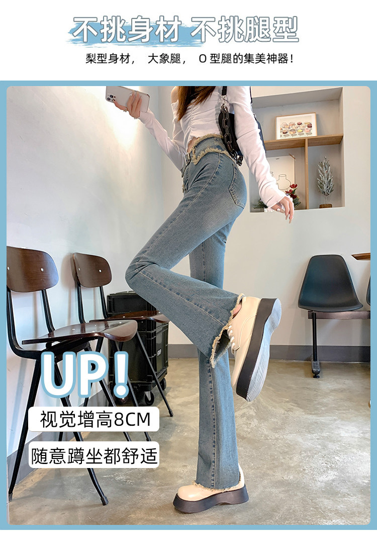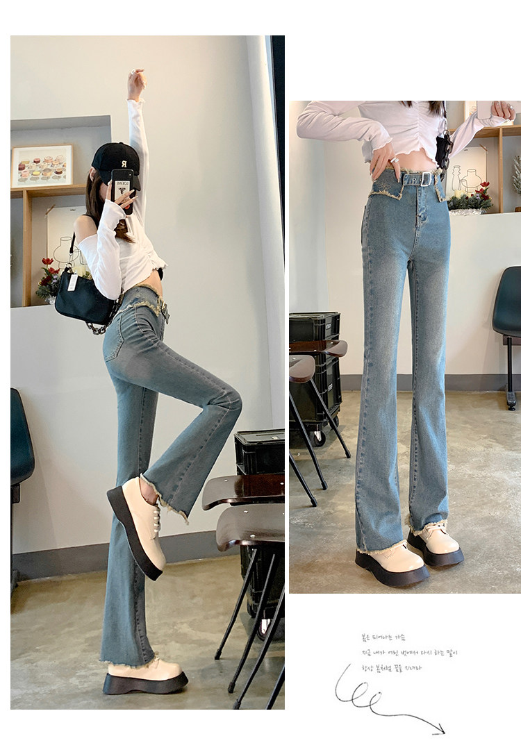 DearGod正韓女裝毛邊喇叭牛仔褲女高腰顯瘦2022秋冬新款修身彈力闊腿美式高街拖地