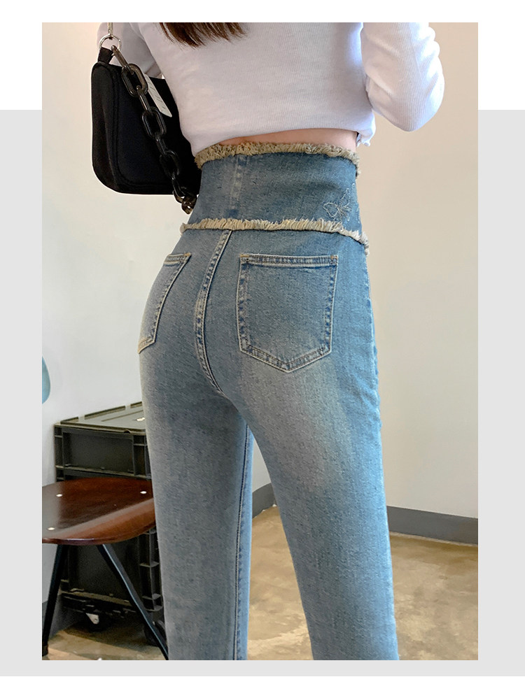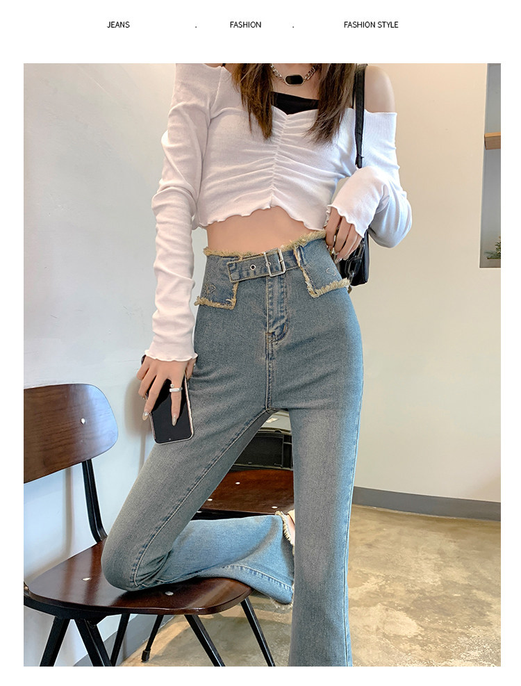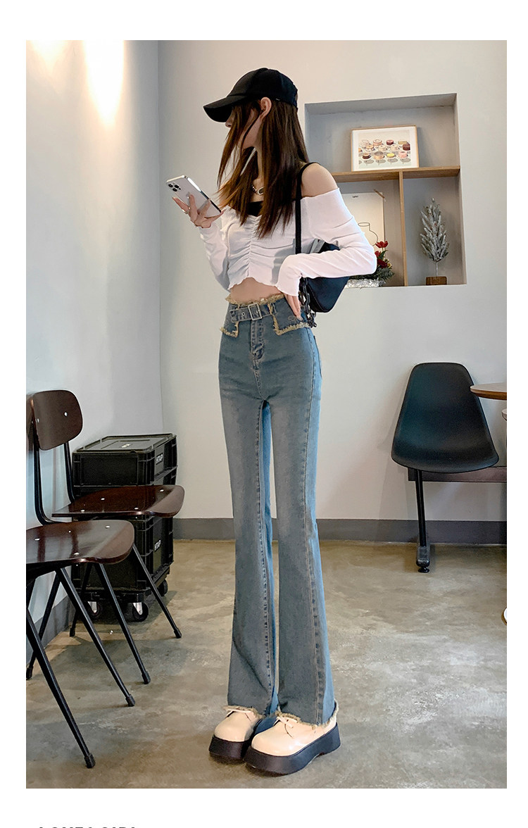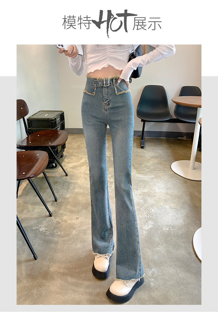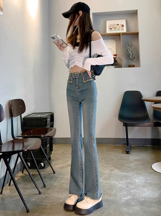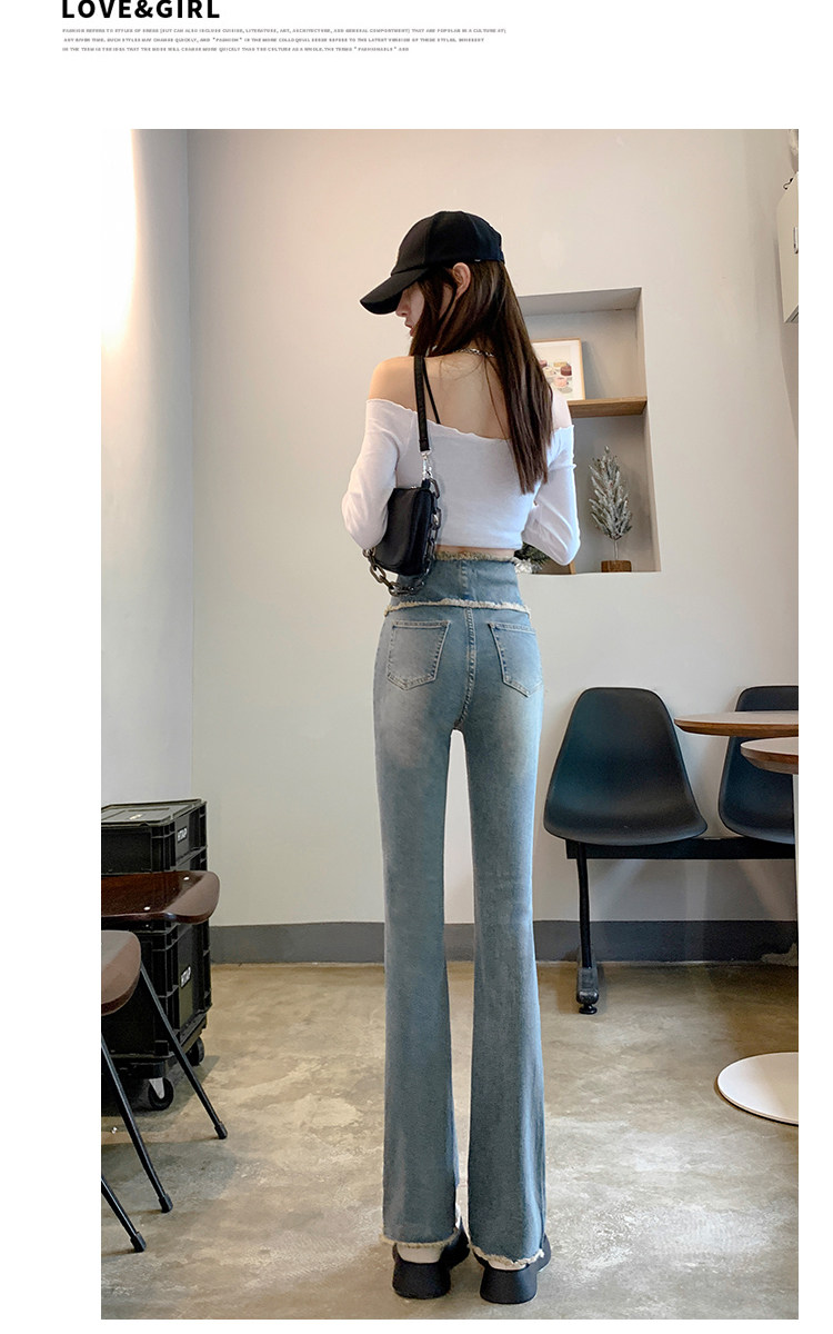 DearGod正韓女裝毛邊喇叭牛仔褲女高腰顯瘦2022秋冬新款修身彈力闊腿美式高街拖地
