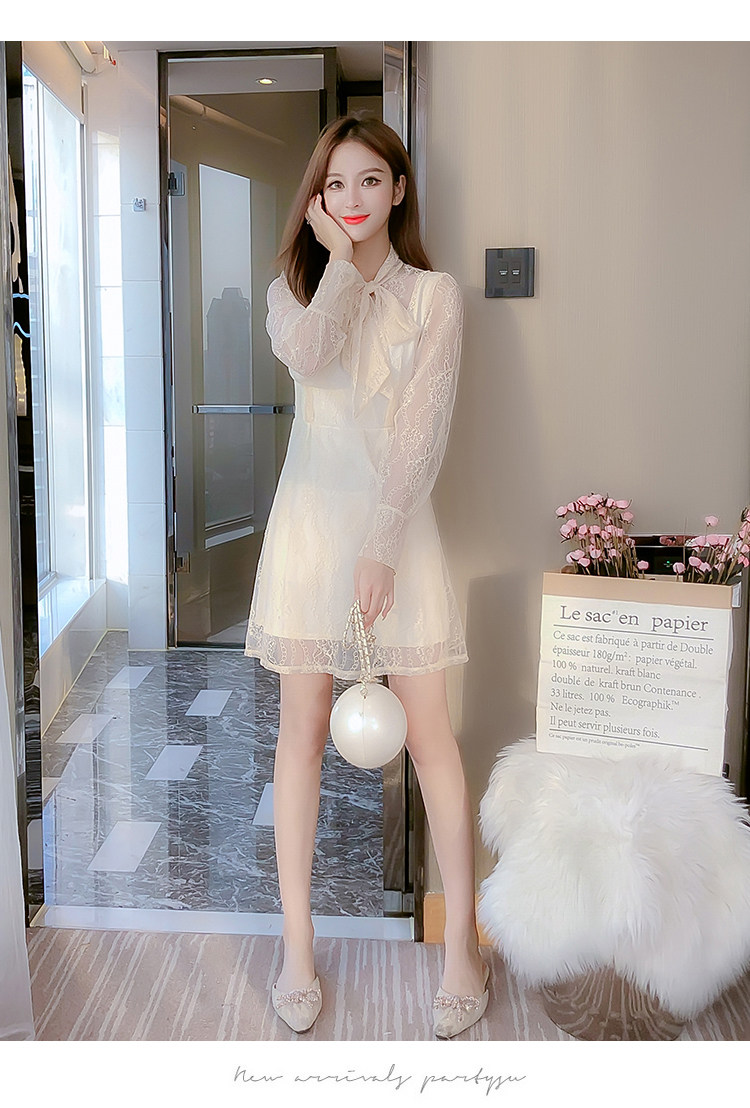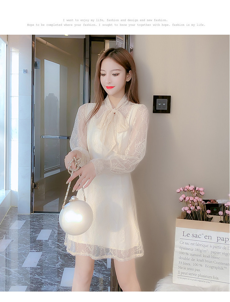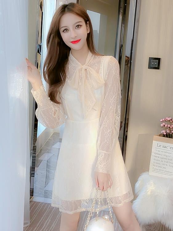 DearGod正韓女裝法式2022年秋冬新款打底連身裙仙女小個子顯瘦氣質a字蕾絲裙子洋裝潮
