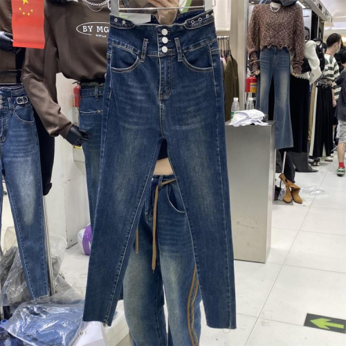DearGod正韓女裝V-PM高腰牛仔褲女冬季Chic新款直筒修身顯瘦百搭鉛筆小腳褲長褲