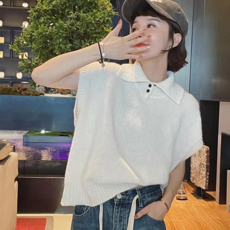 DearGod正韓女裝歐洲站2022秋季新款韓系polo領套頭羊絨針織背心百搭無袖毛衣馬甲
