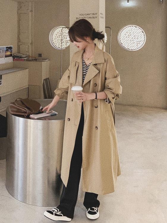 DearGod正韓女裝2022新款長款英倫風復古簡約高級垂感chic正韓休閒風衣外套女春秋