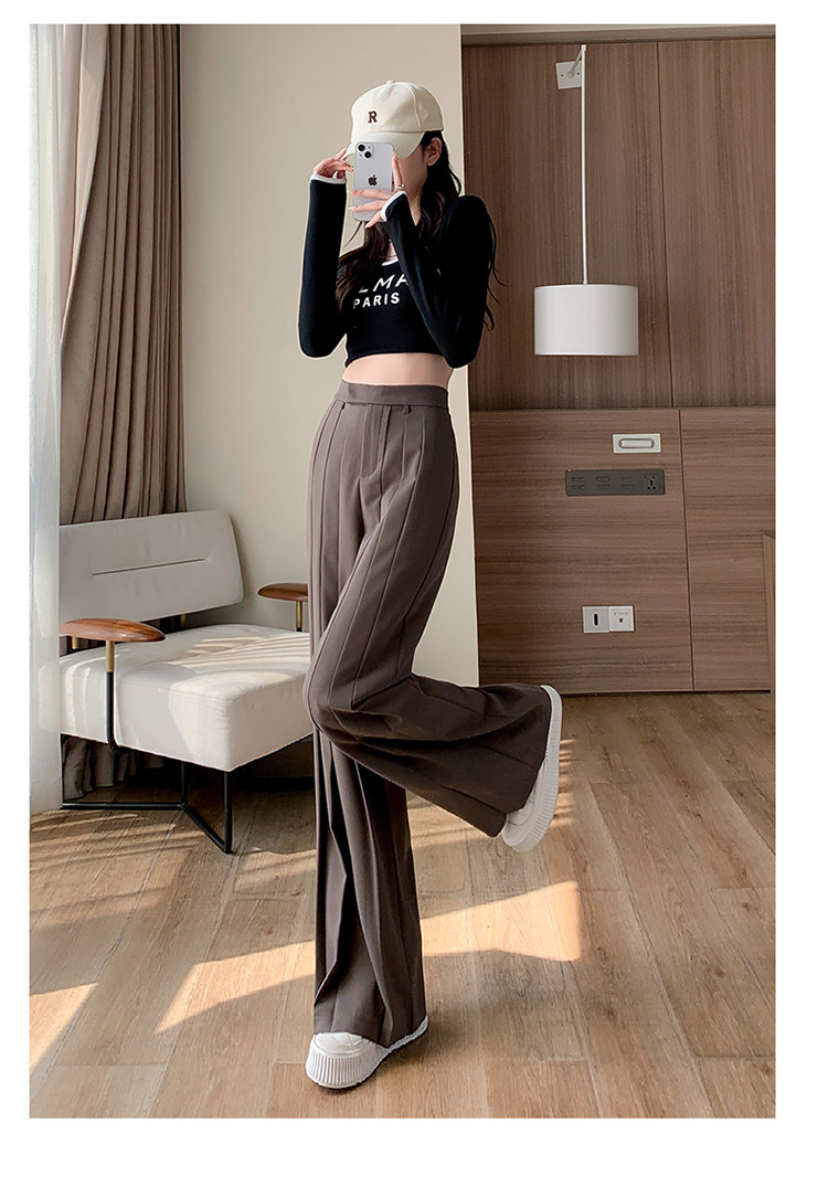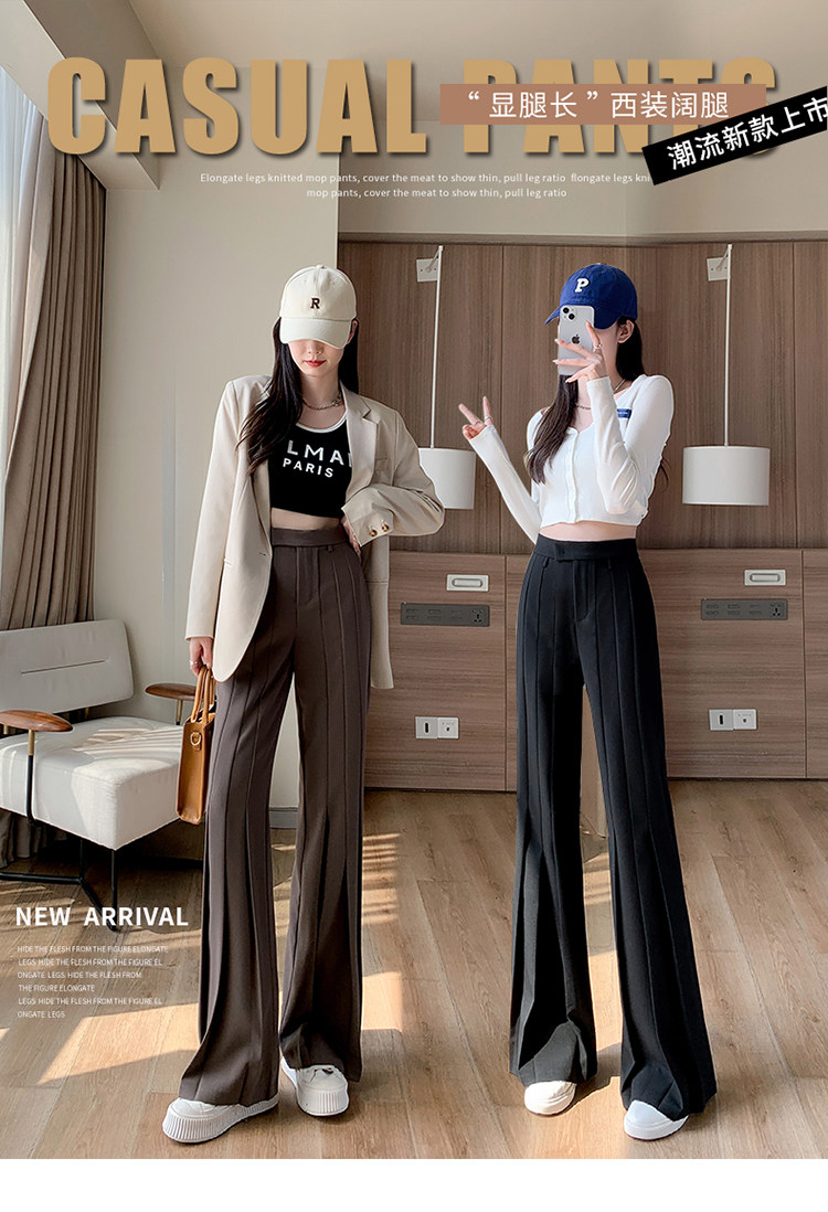 DearGod正韓女裝2022秋冬新款西裝褲寬松闊腿褲高腰直筒百褶顯瘦拖地褲休閒長褲女