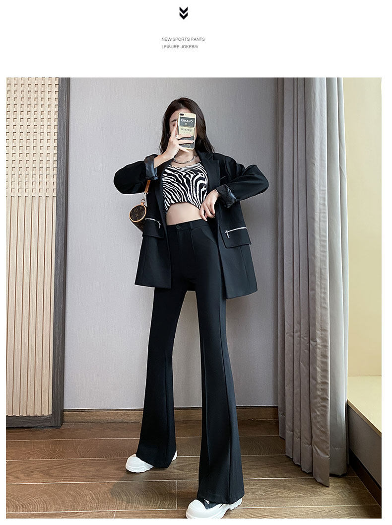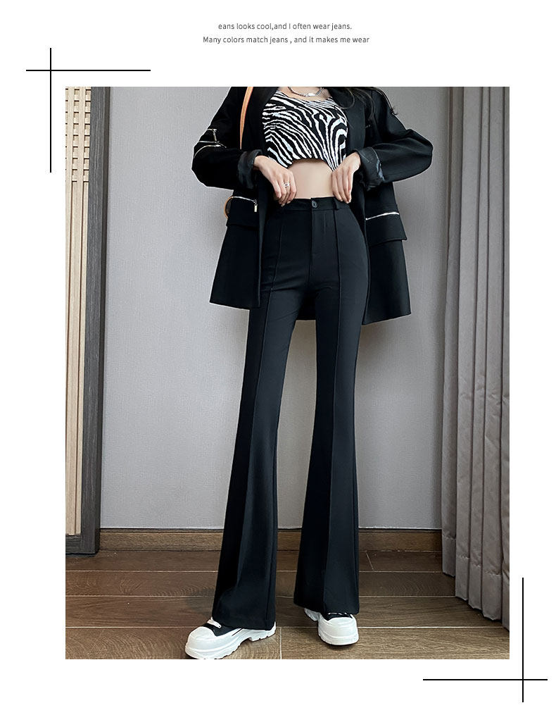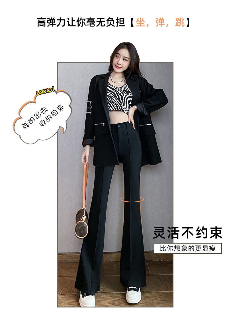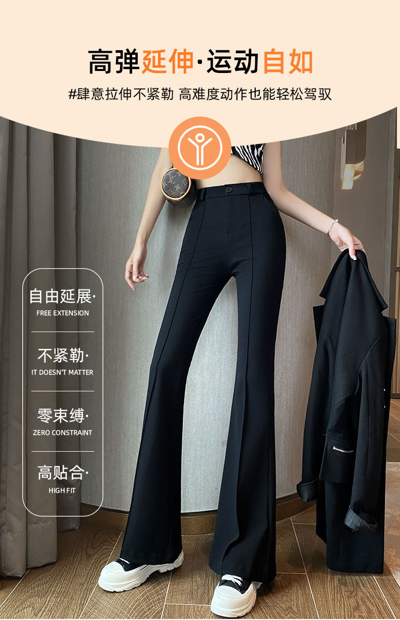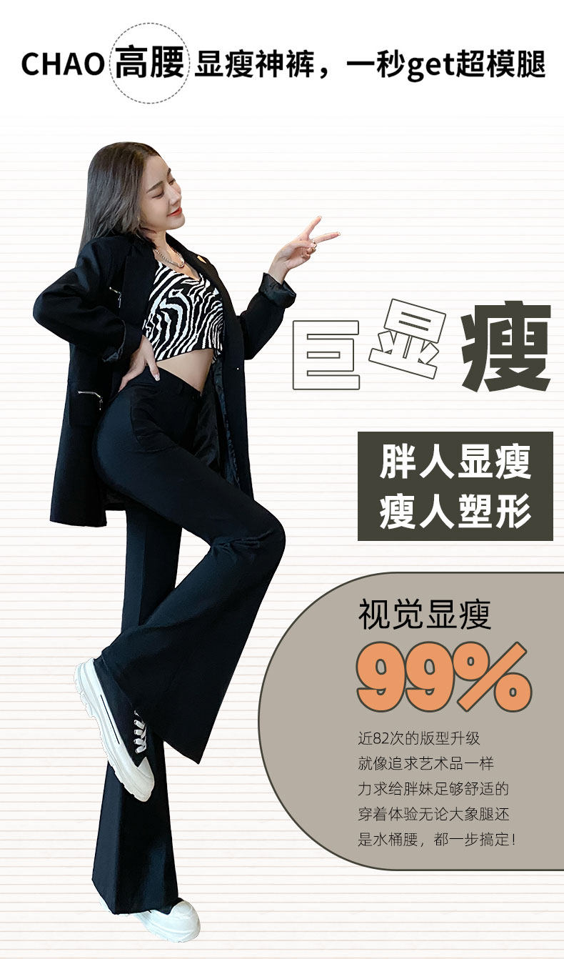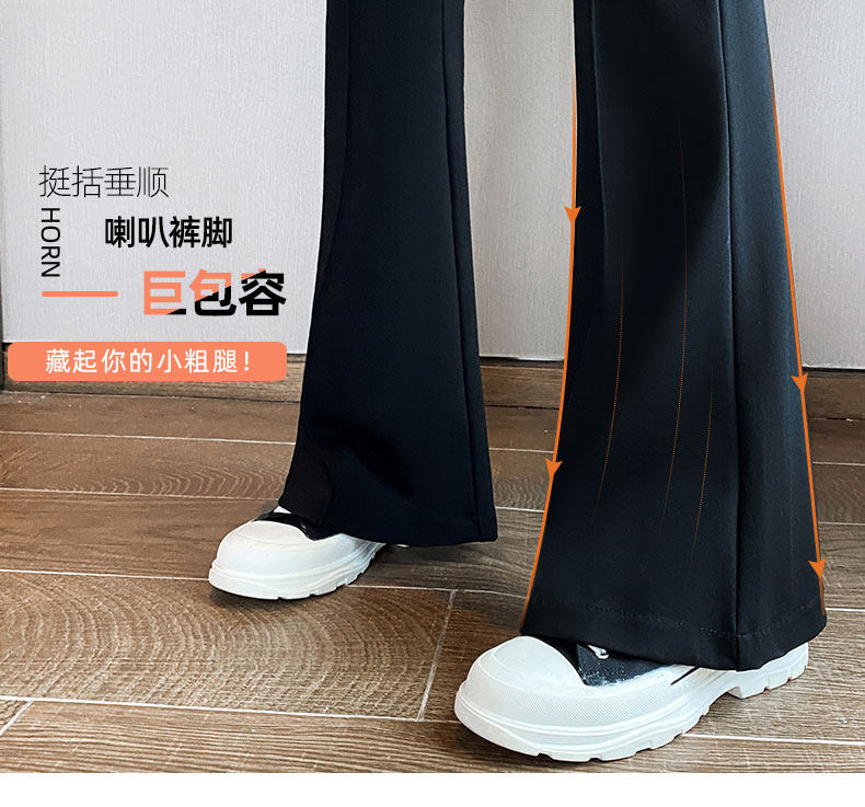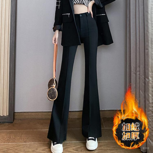 DearGod正韓女裝加絨加厚黑色加長褲子女秋冬2022新款微喇叭褲高個子高腰顯瘦長褲