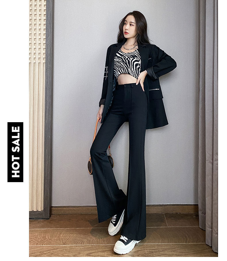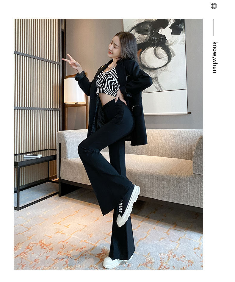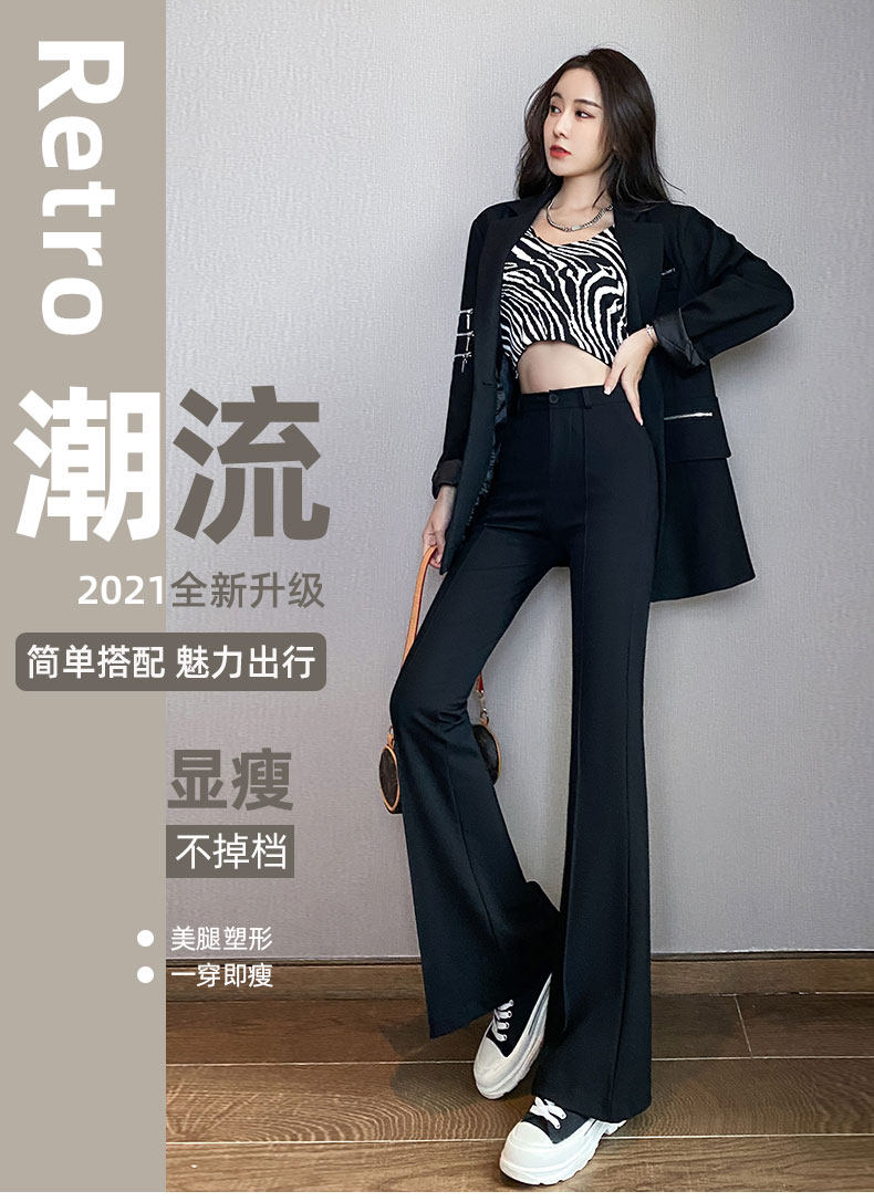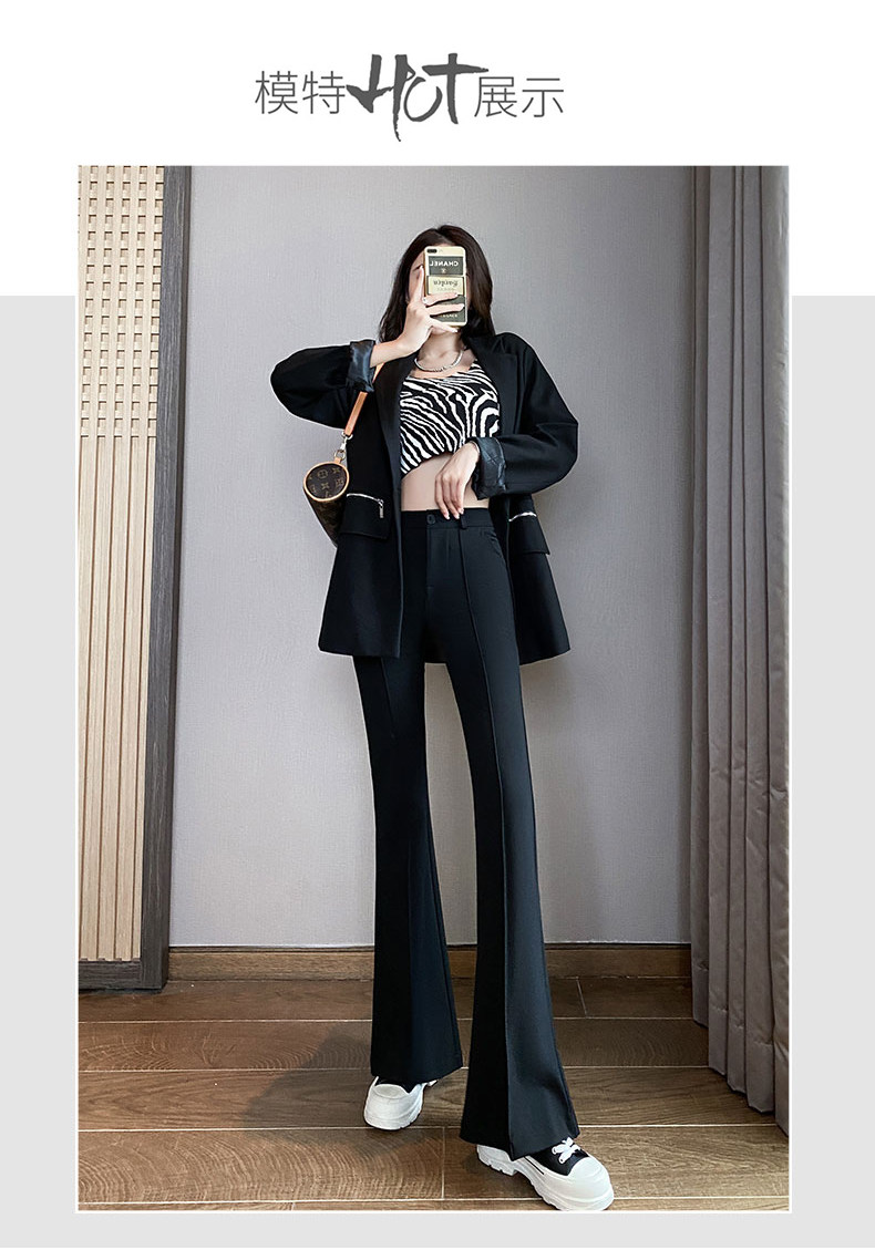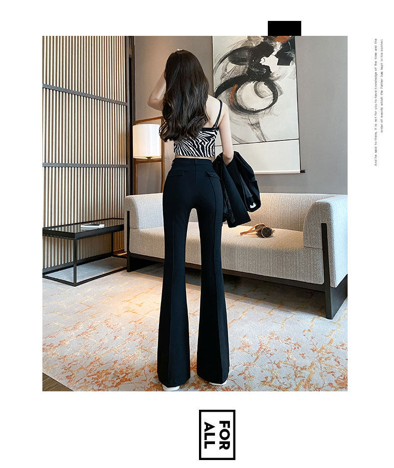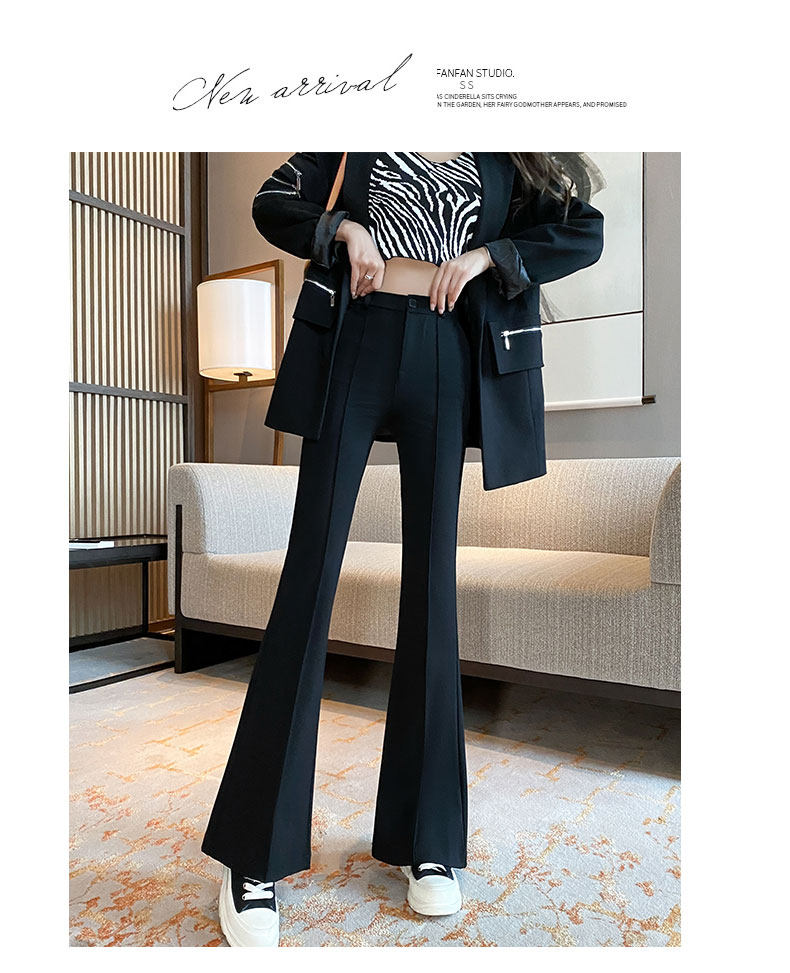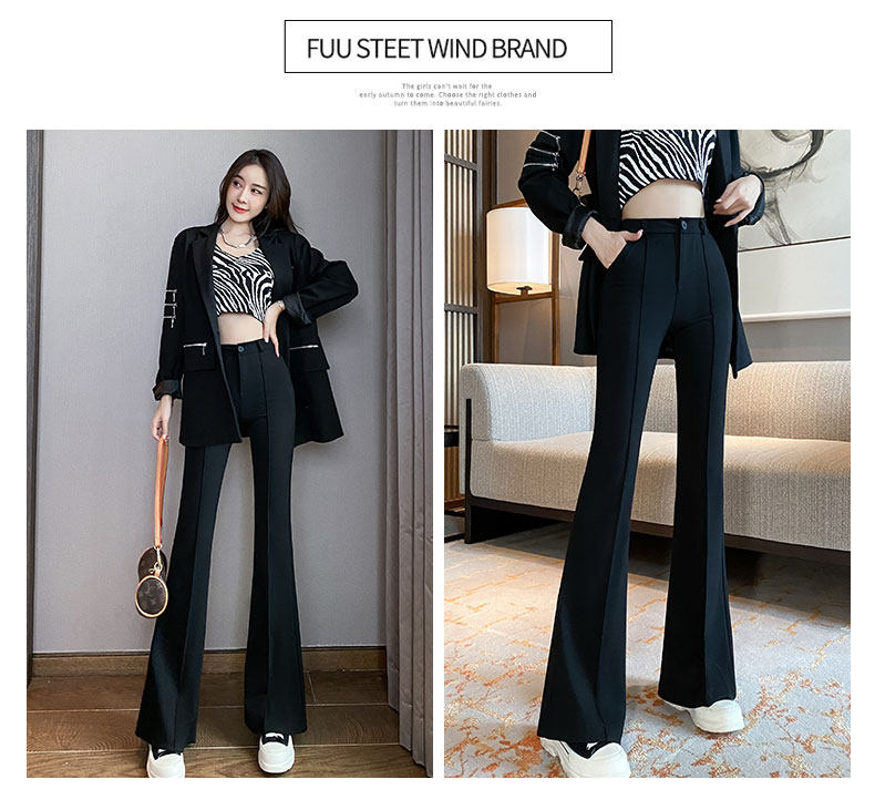 DearGod正韓女裝加絨加厚黑色加長褲子女秋冬2022新款微喇叭褲高個子高腰顯瘦長褲