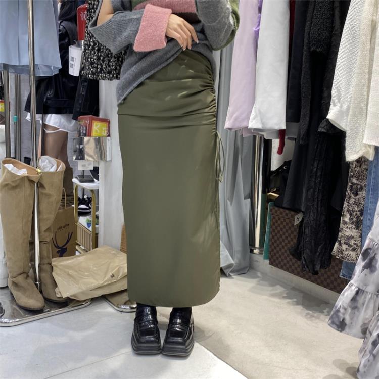 DearGod正韓女裝VIVIAN半身裙女秋季款正韓高腰顯瘦設計感抽繩皺褶包臀復古中長裙
