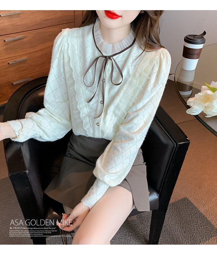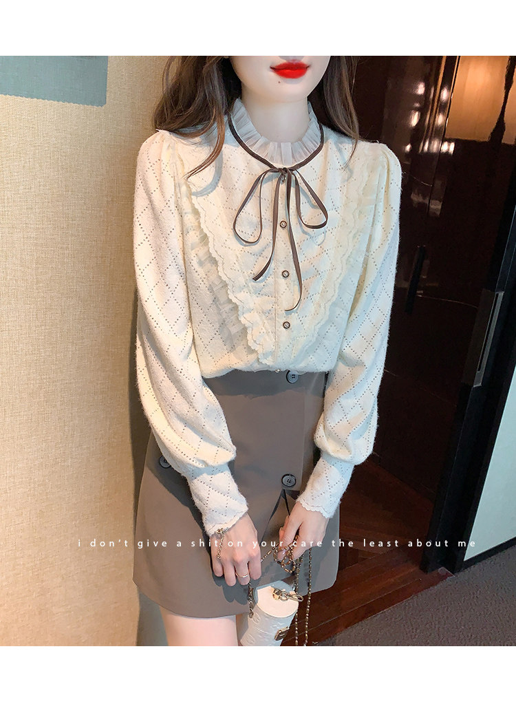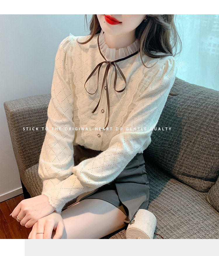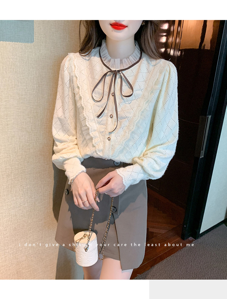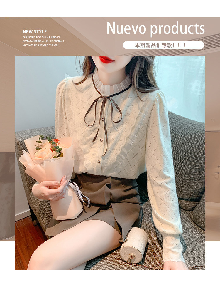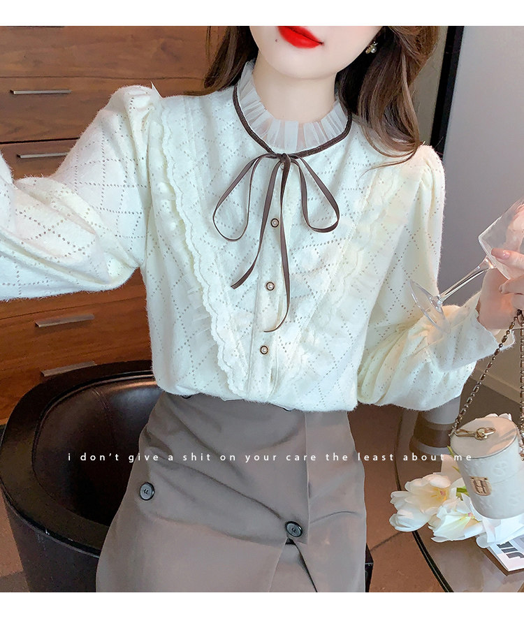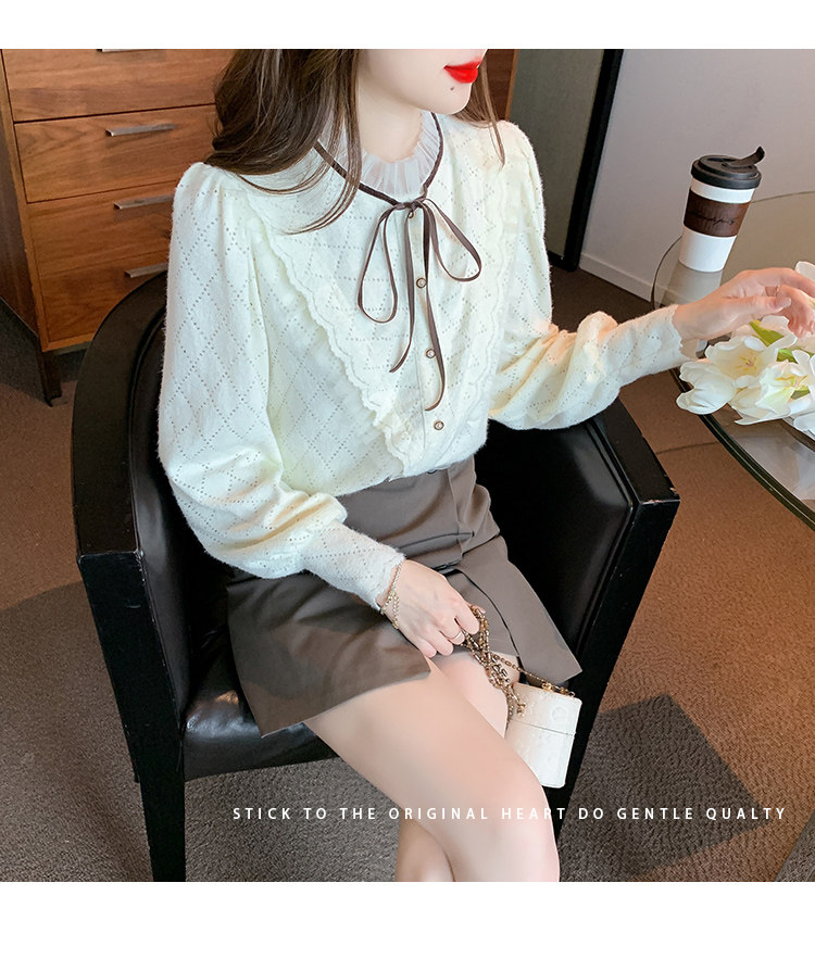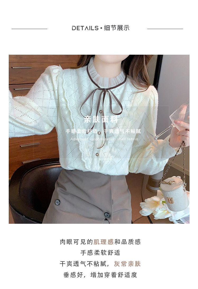 DearGod正韓女裝洋氣襯衣蕾絲打底衫2022秋冬季新款氣質甜美減齡蝴蝶結長袖上衣女
