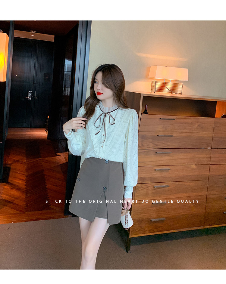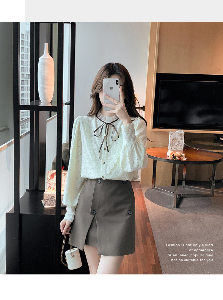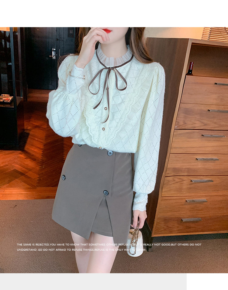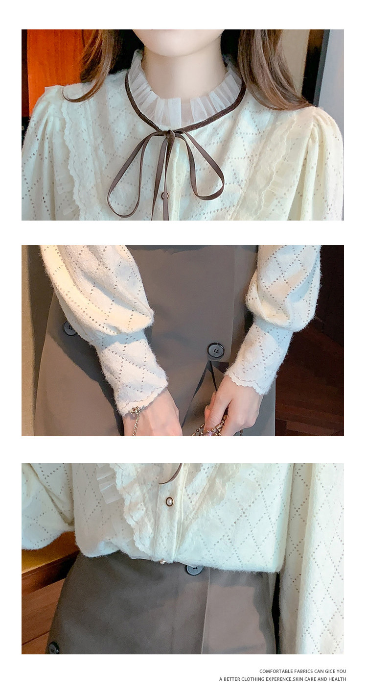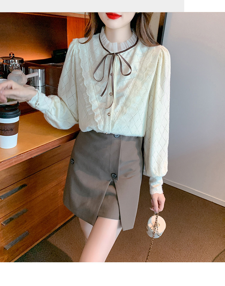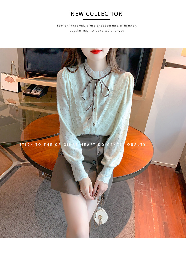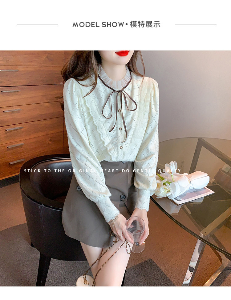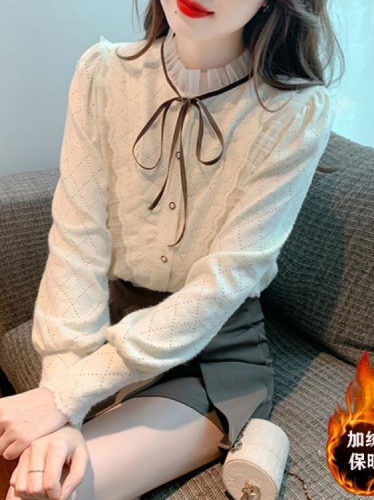 DearGod正韓女裝洋氣襯衣蕾絲打底衫2022秋冬季新款氣質甜美減齡蝴蝶結長袖上衣女