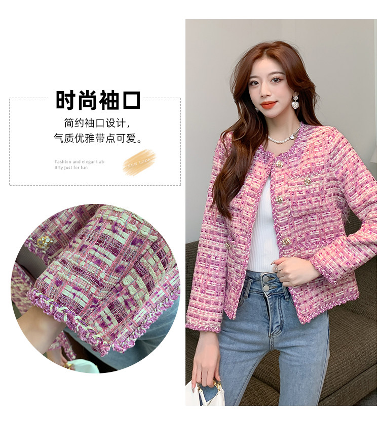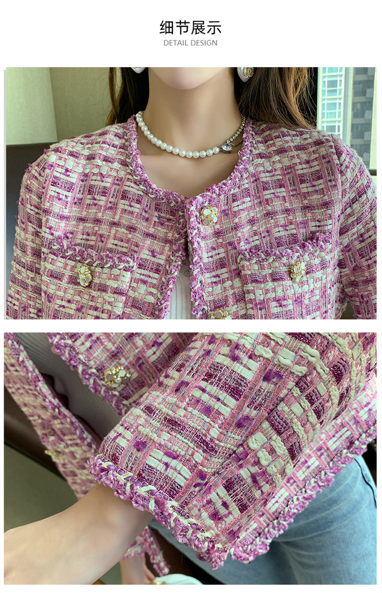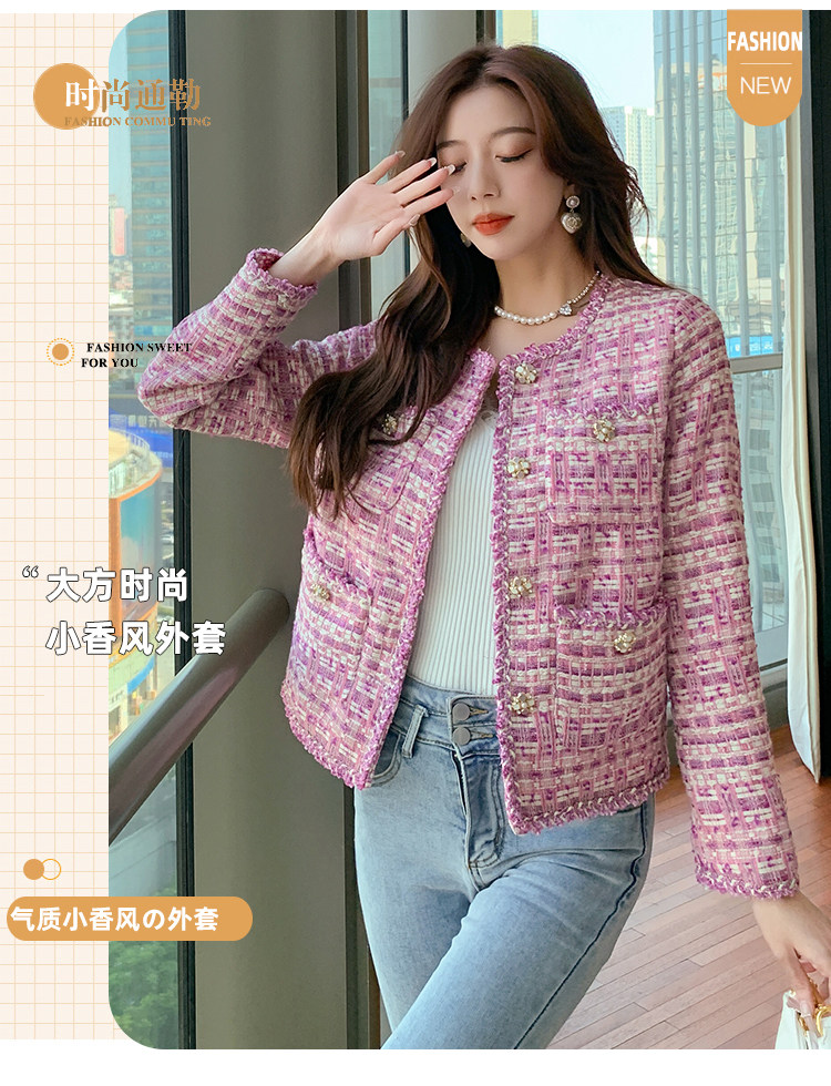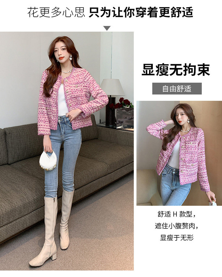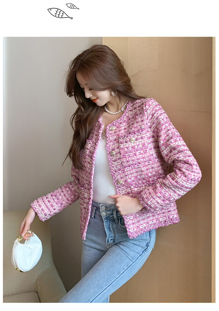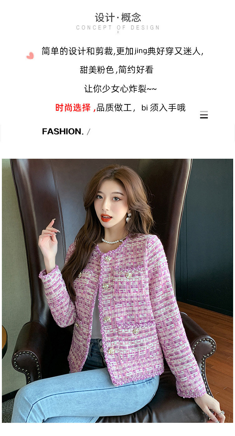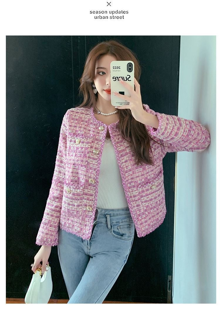 DearGod正韓女裝粉色小香風短外套2022秋冬季新款法式設計感小眾氣質名媛上衣女裝