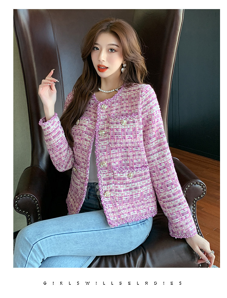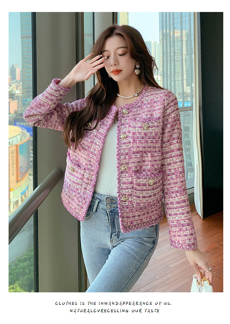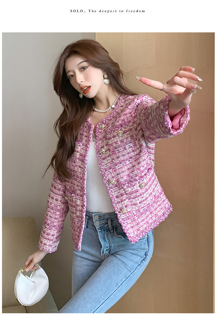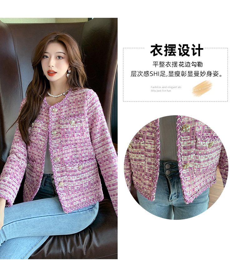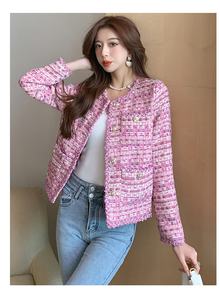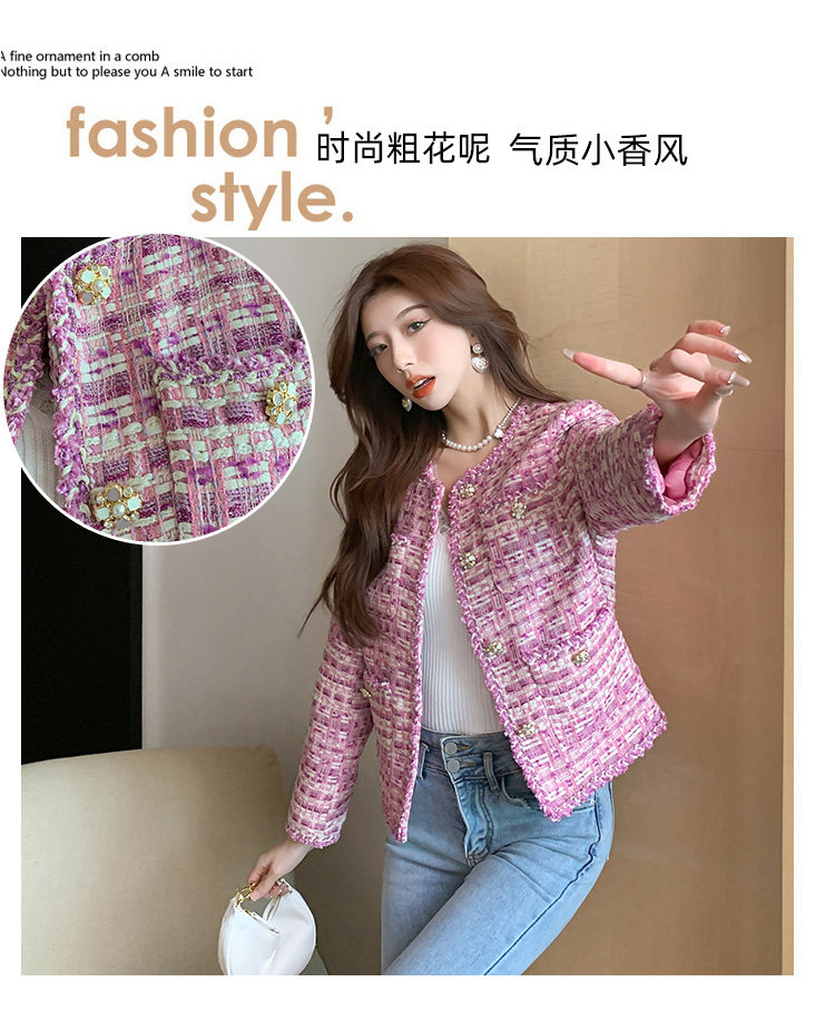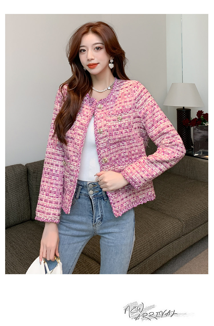 DearGod正韓女裝粉色小香風短外套2022秋冬季新款法式設計感小眾氣質名媛上衣女裝