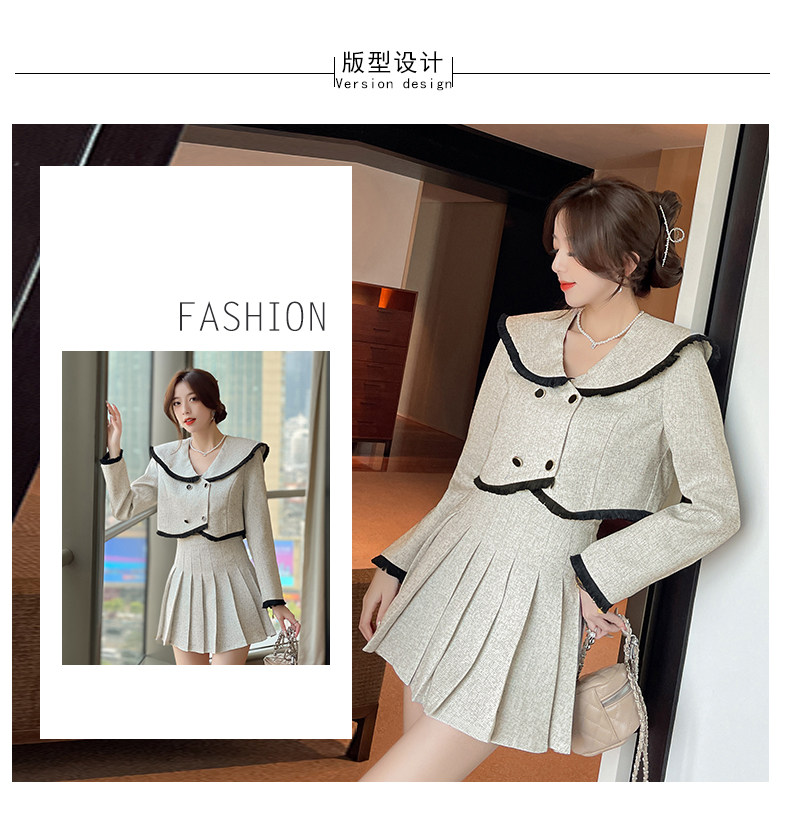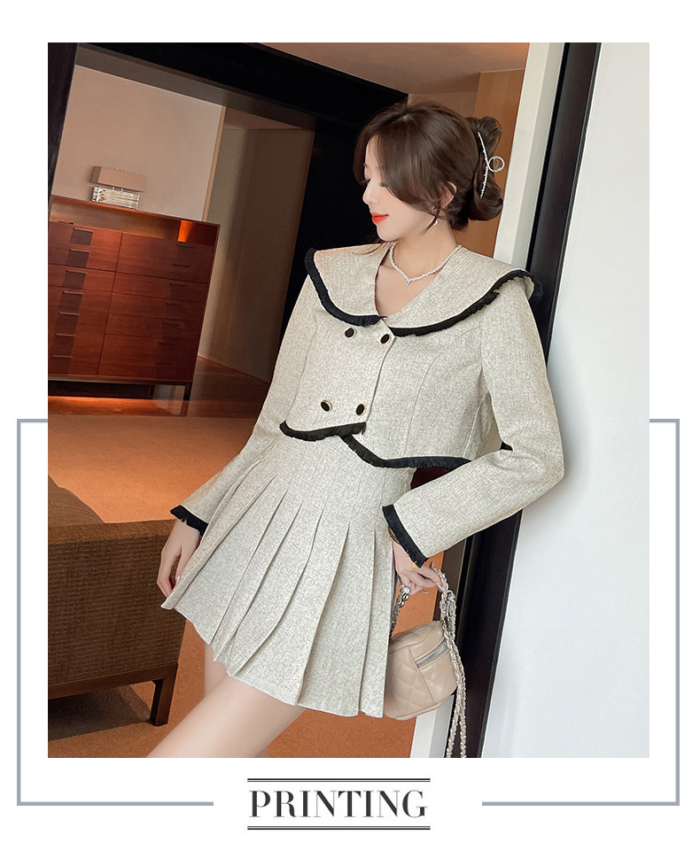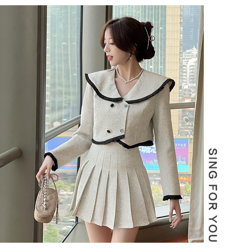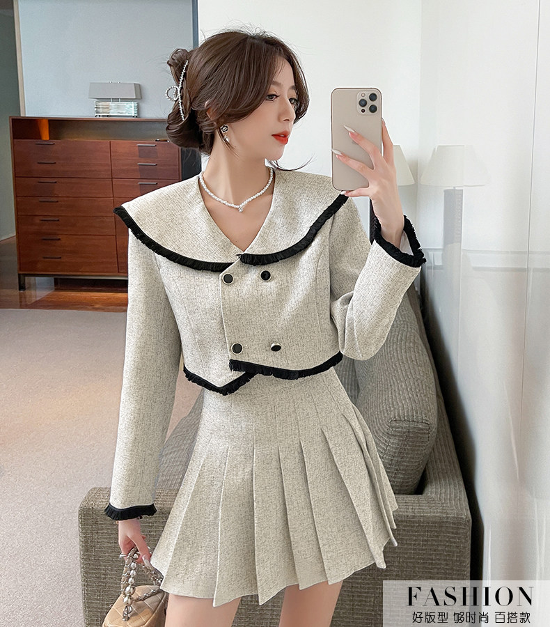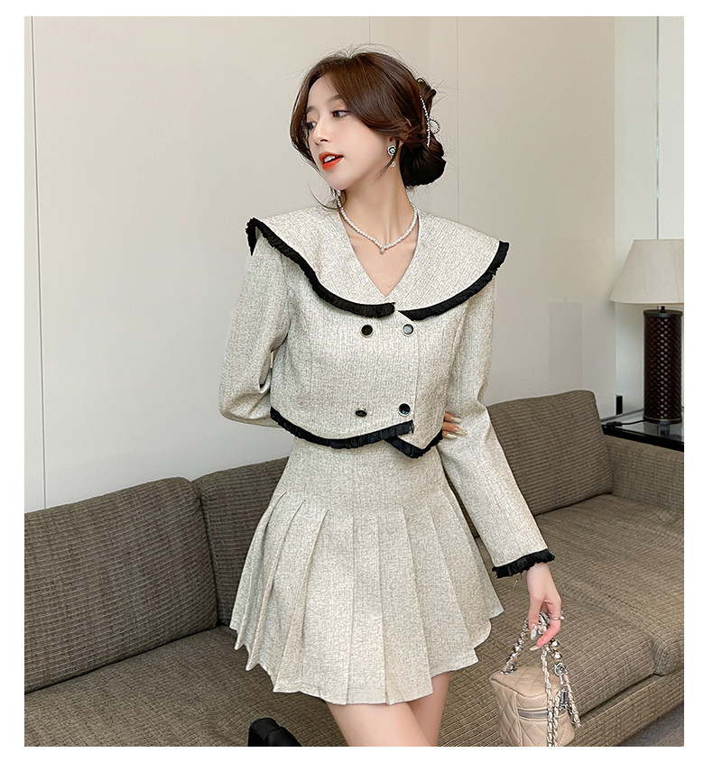 DearGod正韓女裝流蘇邊減齡翻領小香風長袖外套女收腹百褶半身裙早秋新款兩件套潮