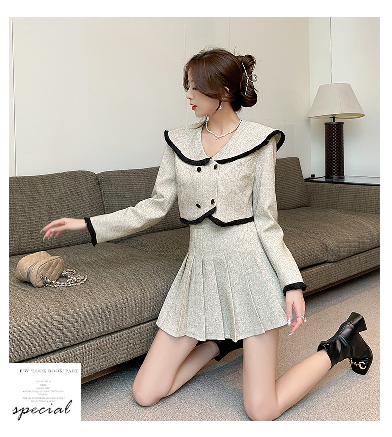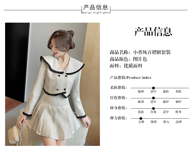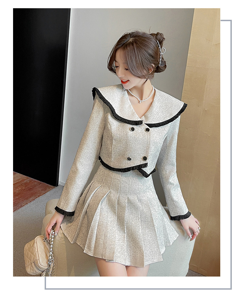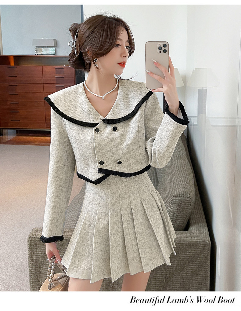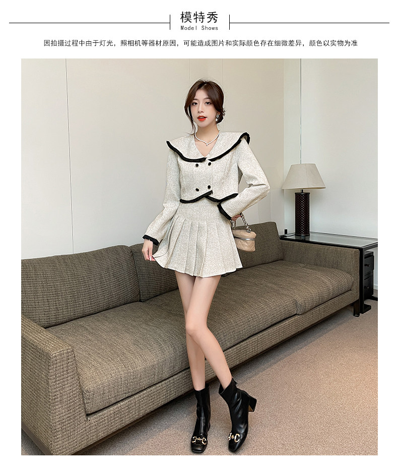 DearGod正韓女裝流蘇邊減齡翻領小香風長袖外套女收腹百褶半身裙早秋新款兩件套潮