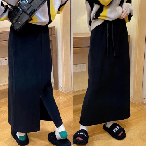 DearGod正韓女裝歐洲站2022秋冬新款松緊腰中長直筒裙百搭顯瘦后開叉絲絨半身裙女