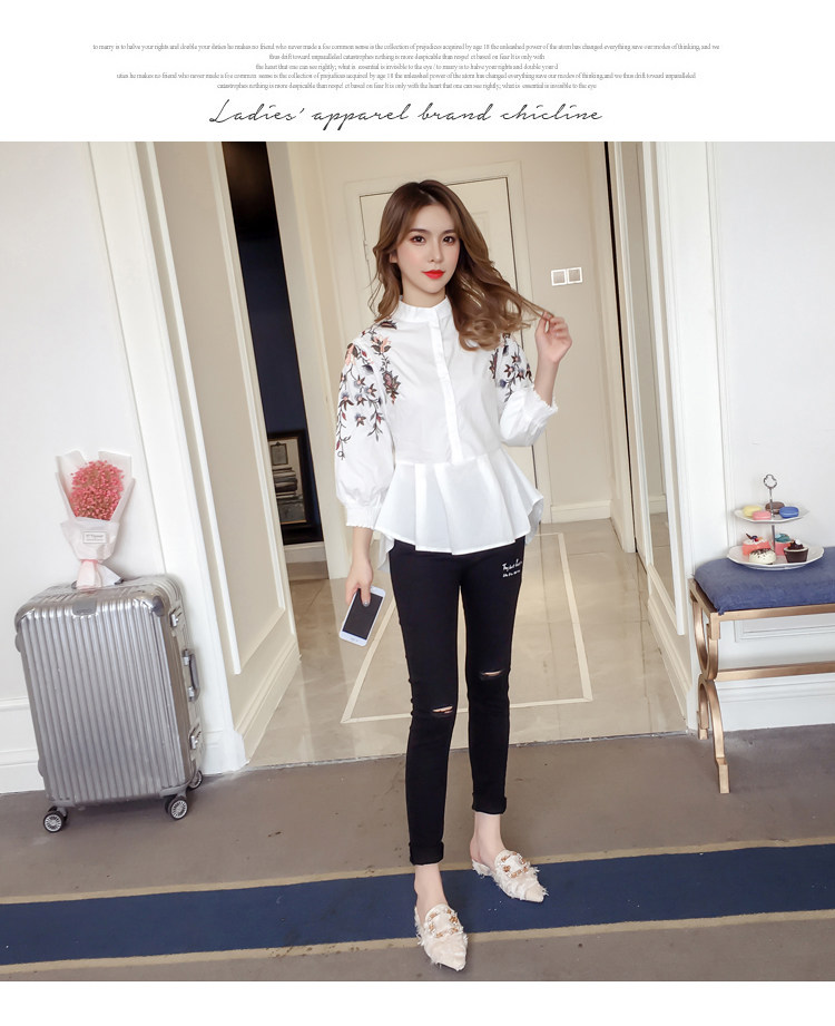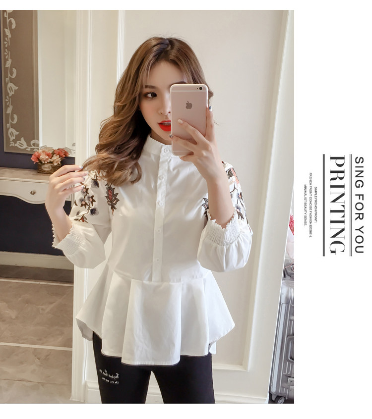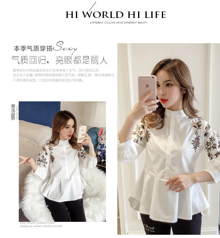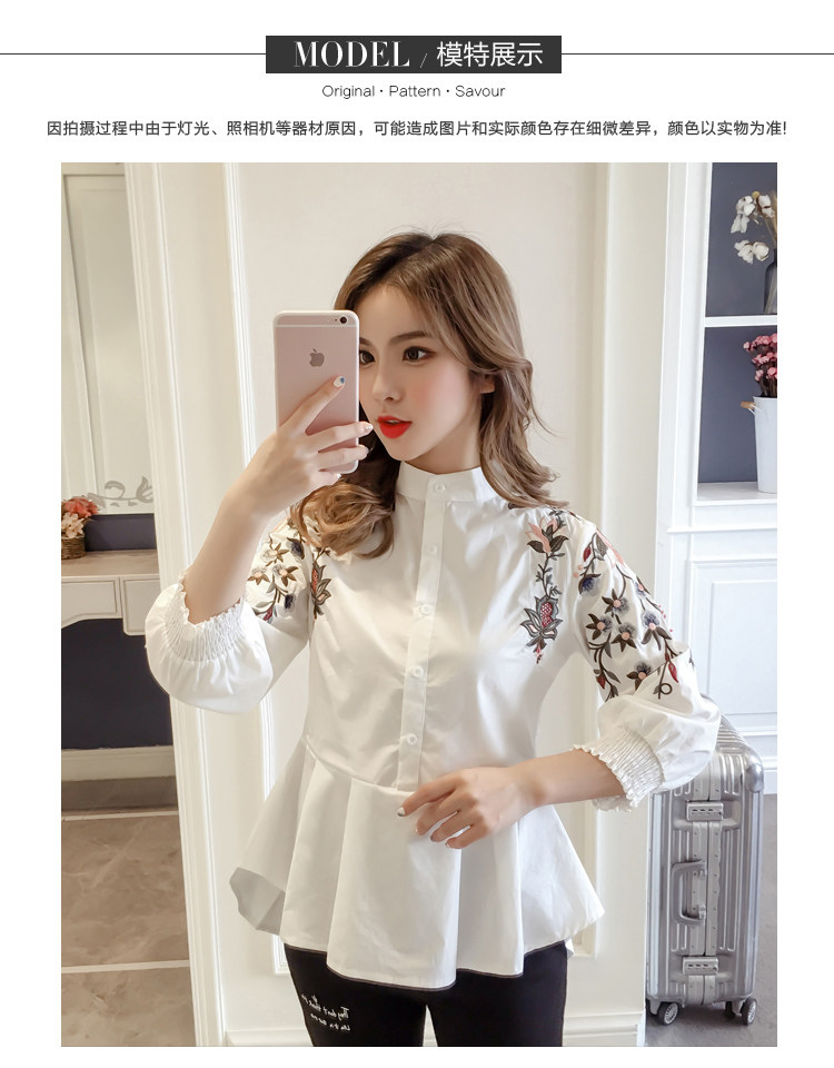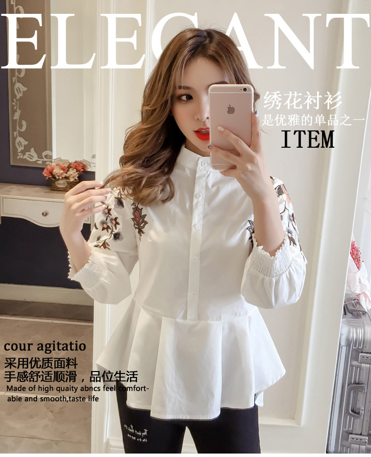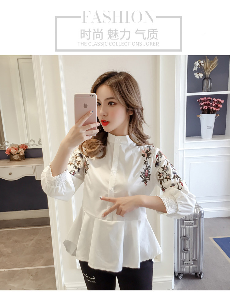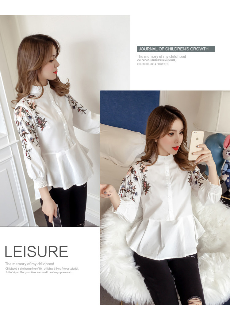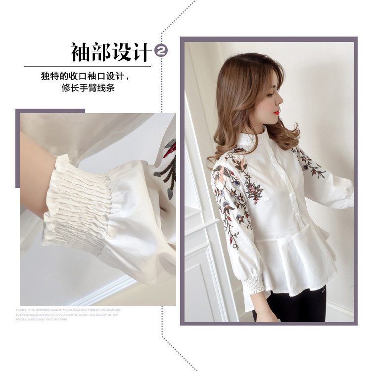 DearGod正韓女裝2022春秋款新款襯衣復古民族風刺繡襯衫女收腰長袖上衣正韓娃娃衫