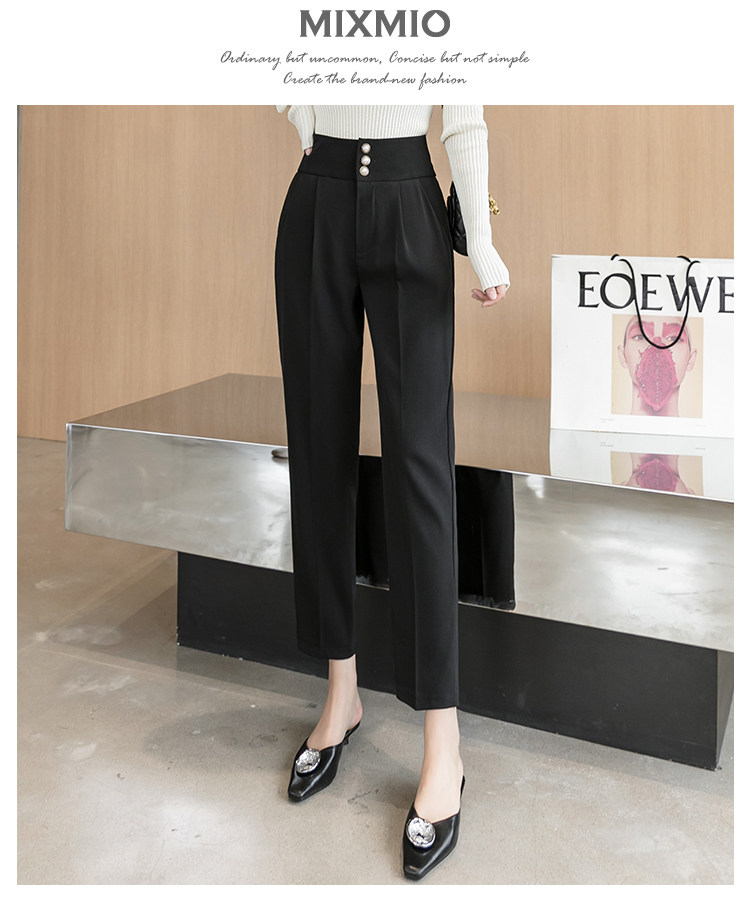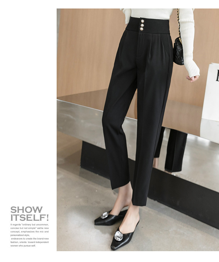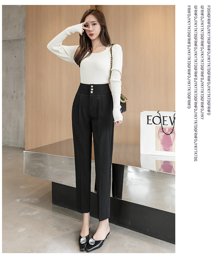 DearGod正韓女裝2022年秋冬新款高腰顯瘦休閒小個子九分褲女垂感西褲小腳褲哈倫褲