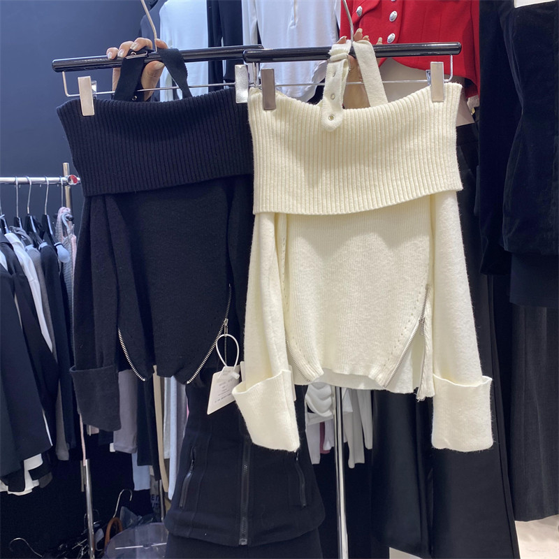 DearGod正韓女裝Baby studio加厚針織衫女冬季款高級感設計露肩性感氣質寬松上衣