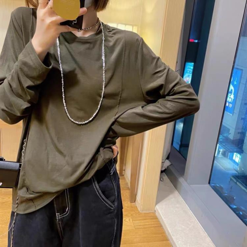 DearGod正韓女裝歐洲站2022秋季新款圓領壓線垂感打底衫長袖純色寬松百搭墊肩T恤