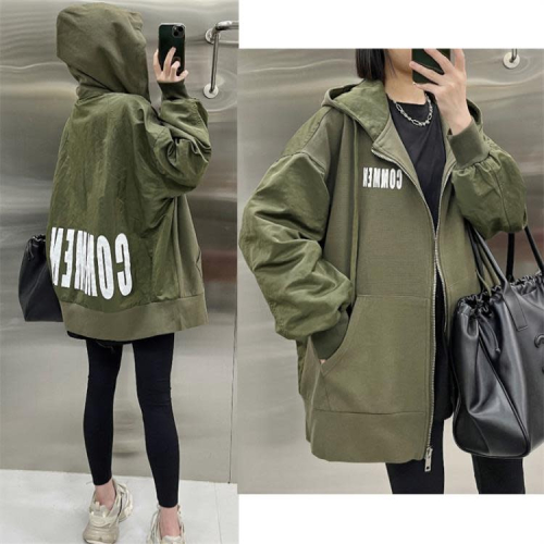 DearGod正韓女裝歐洲站2022秋季香港連帽后背字母印花風衣拼接大版拉鍊衛衣外套女