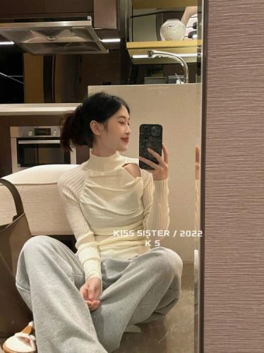 DearGod正韓女裝KISS SISTER秋冬正韓修身顯瘦露肩小心機設計感半高領針織上衣女