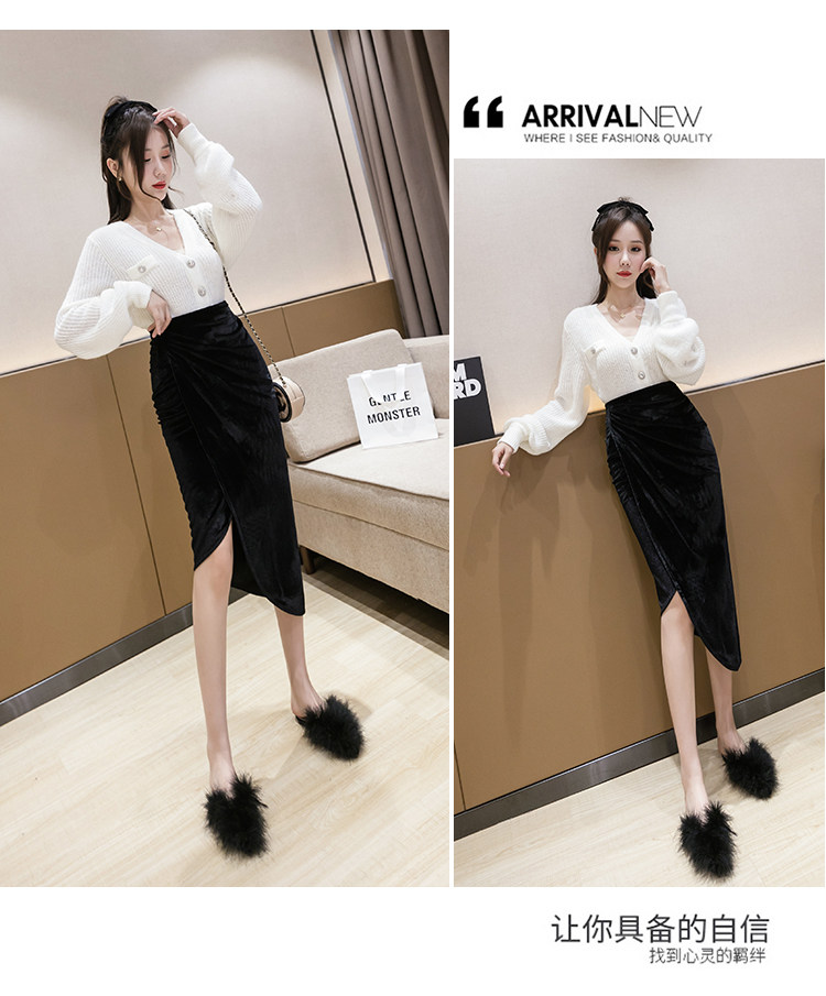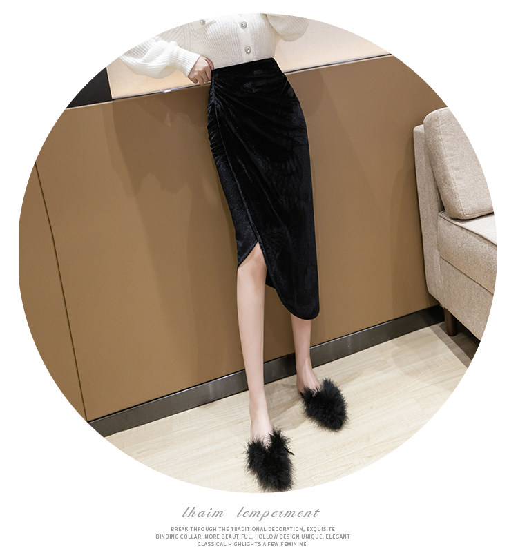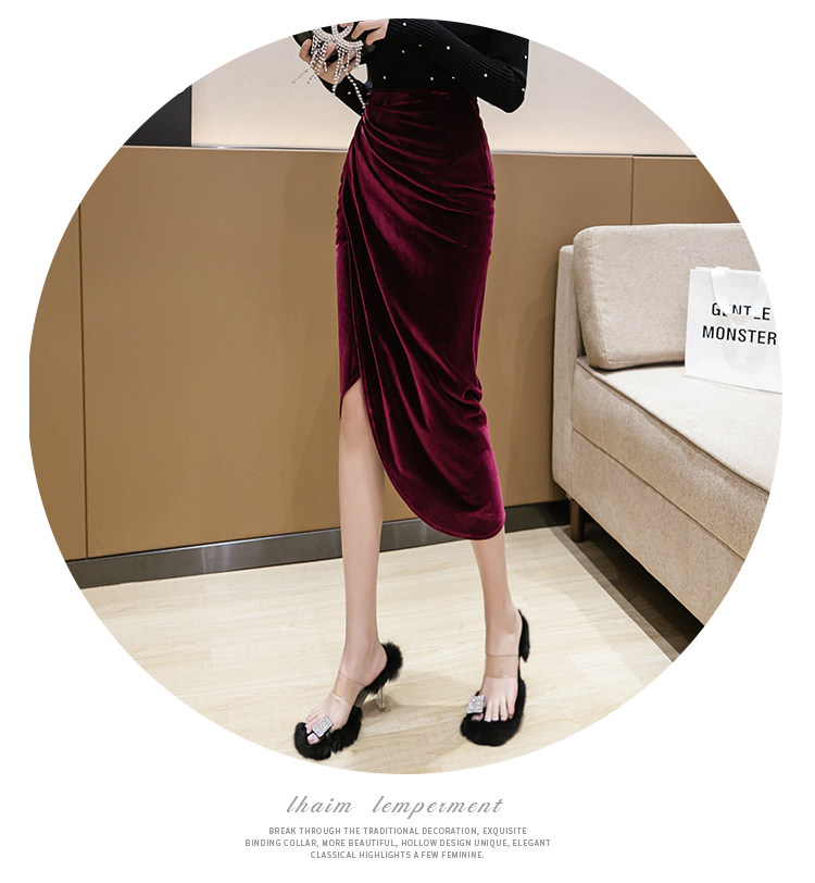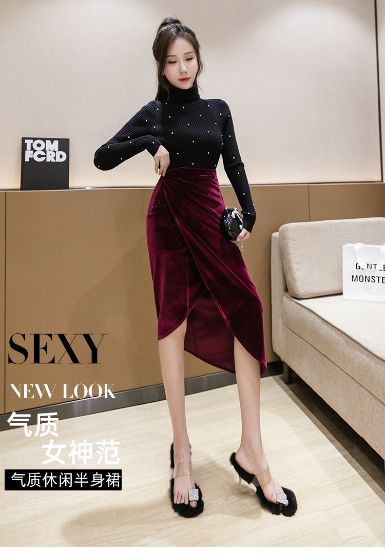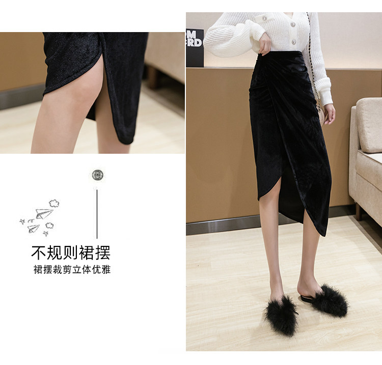 DearGod正韓女裝不規則大氣半身裙女秋冬設計感小眾金絲絨包臀裙中長款高腰A字裙