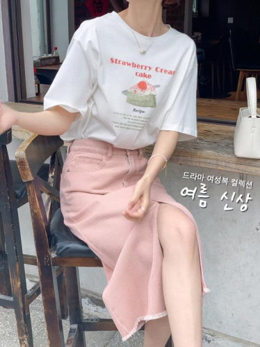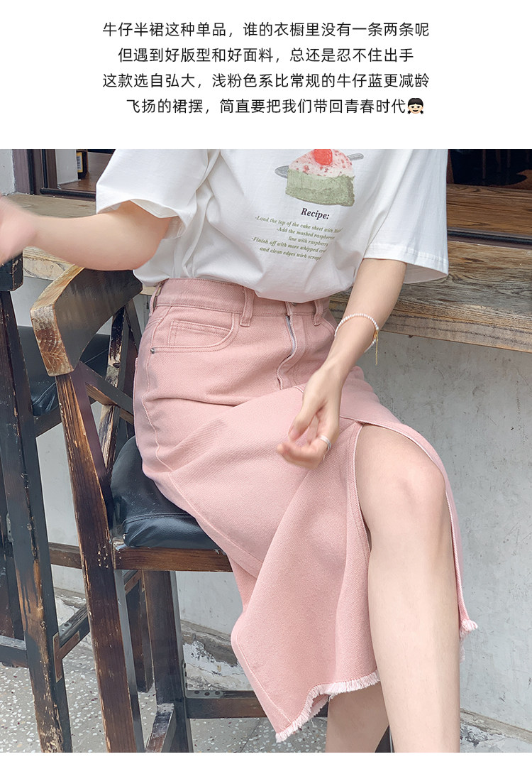 DearGod正韓女裝【致青春】法兒家 韓國定制高腰松緊開衩毛須邊粉色牛仔半身裙夏