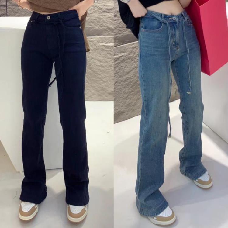 DearGod正韓女裝歐洲站2022早秋歐貨系繩高腰顯瘦小直筒馬蹄褲長褲洋氣微喇牛仔褲