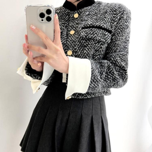 DearGod正韓女裝韓國chic 設計感小眾小香風短款毛呢外套小個子百搭復古上衣