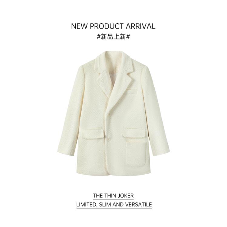 DearGod正韓女裝我是你的cc阿 偷心正妹~小個子初春溫婉2022年白色毛呢短外套